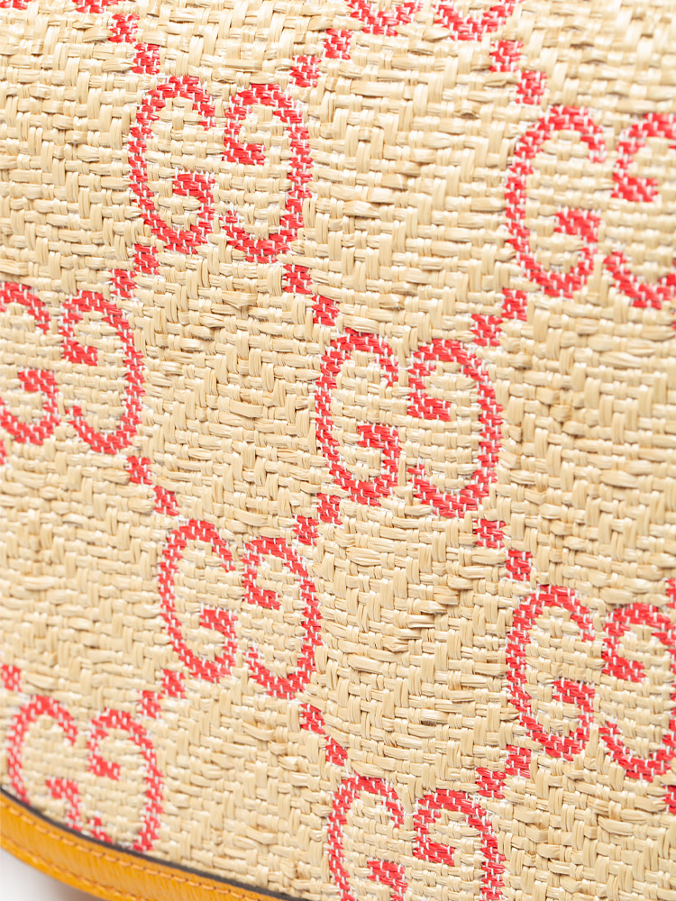 GG Raffia Horsebit 1955 Shoulder Bag Natural Bright Hibiscus