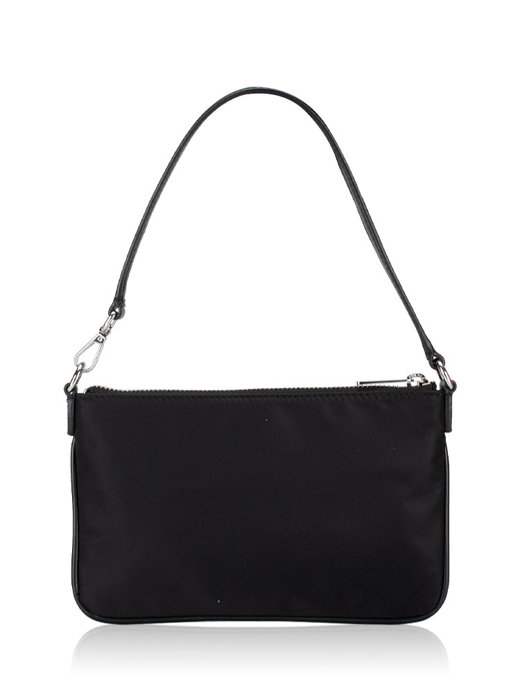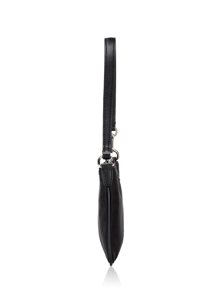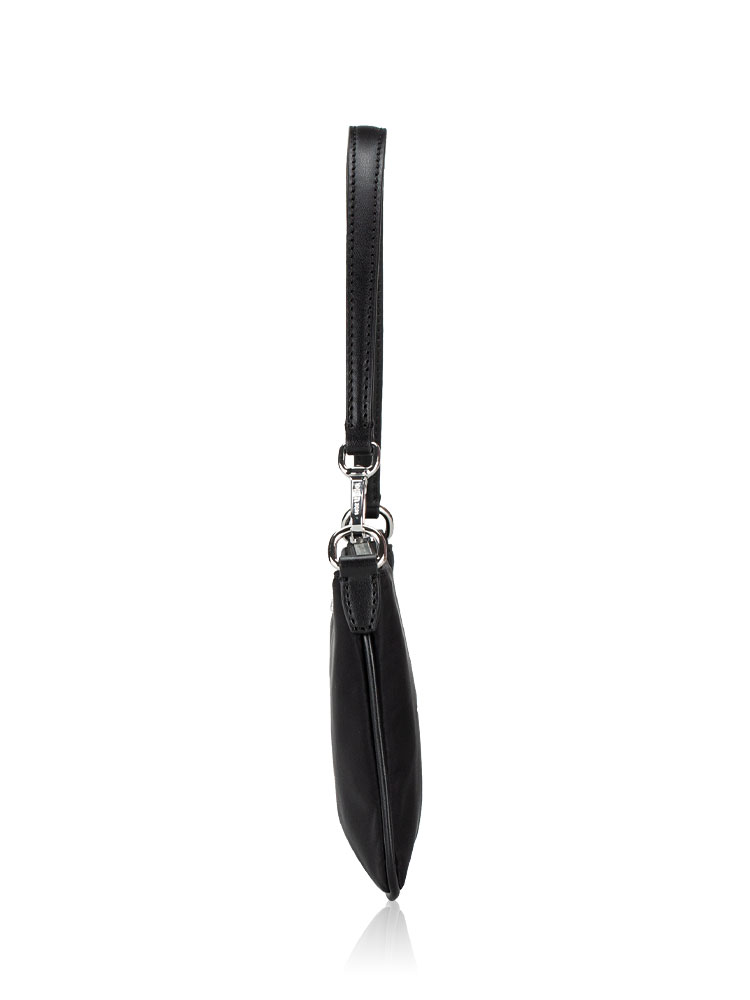 Made of nylon. The wristlet features a zip closure that opens to polyester lining with one slip pocket, handle strap drop 16 cm.