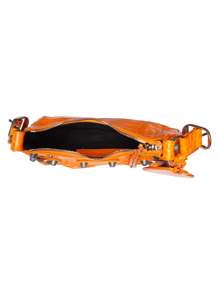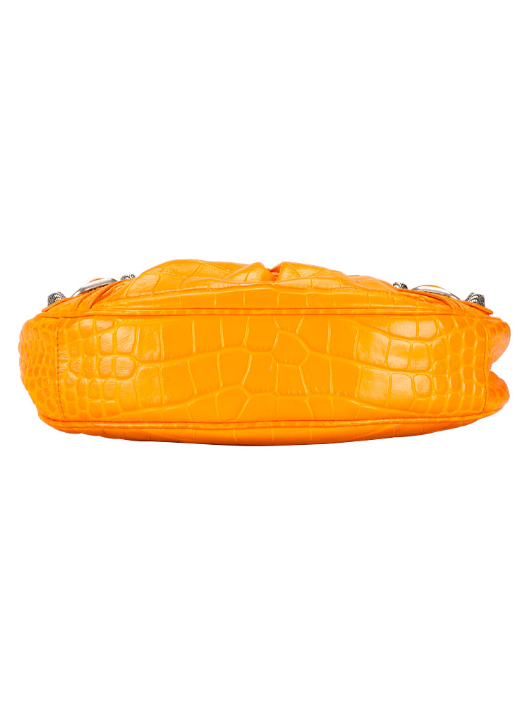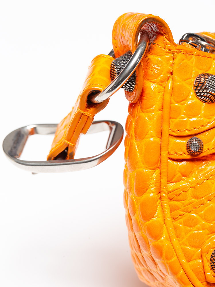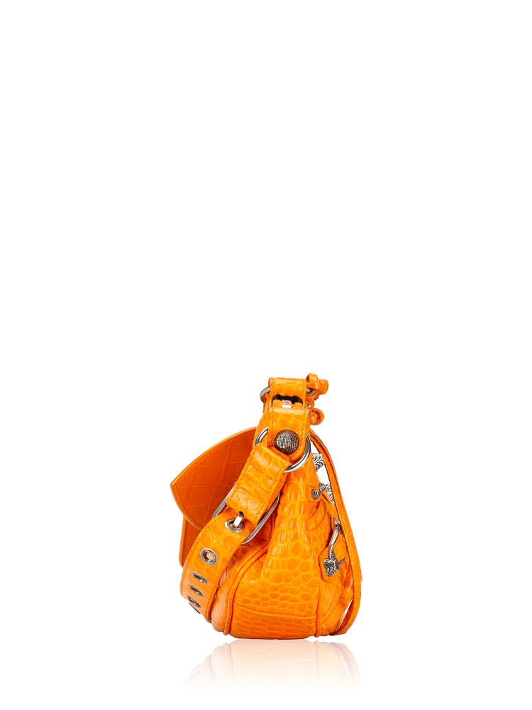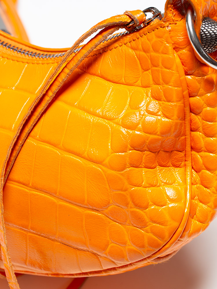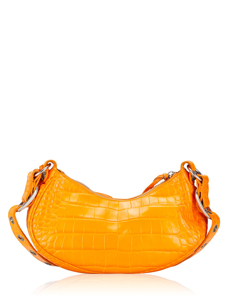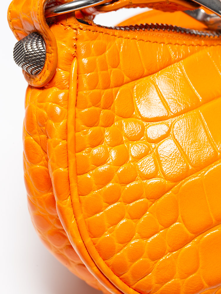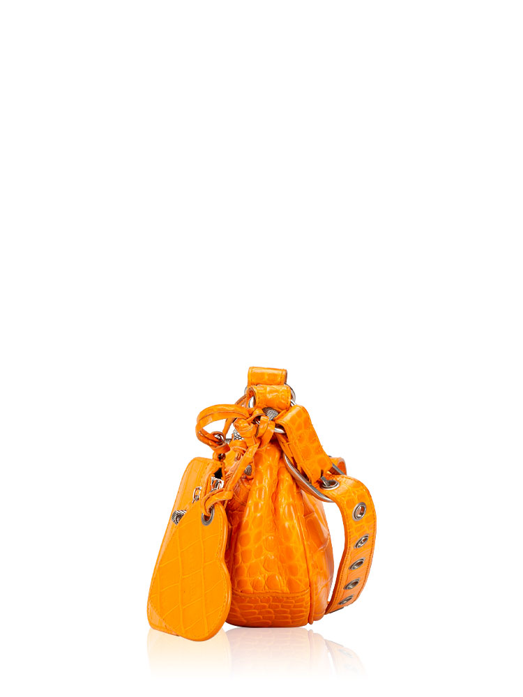 Calfskin Croco Effect Le Cagole XS Shoulder Bag Pop Orange