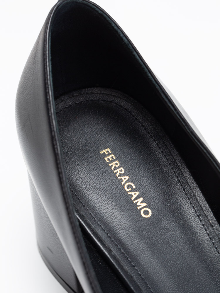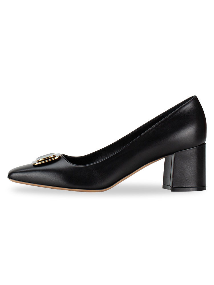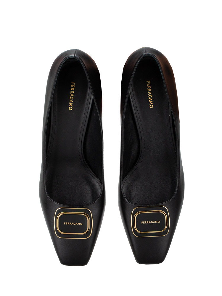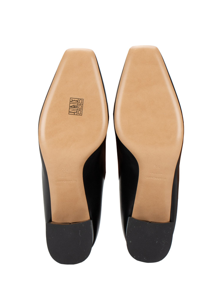 These shoes are crafted of kid leather with a new vara double plate accent at the cap toe. The shoes features leather insole and outsole and 6 cm heels.