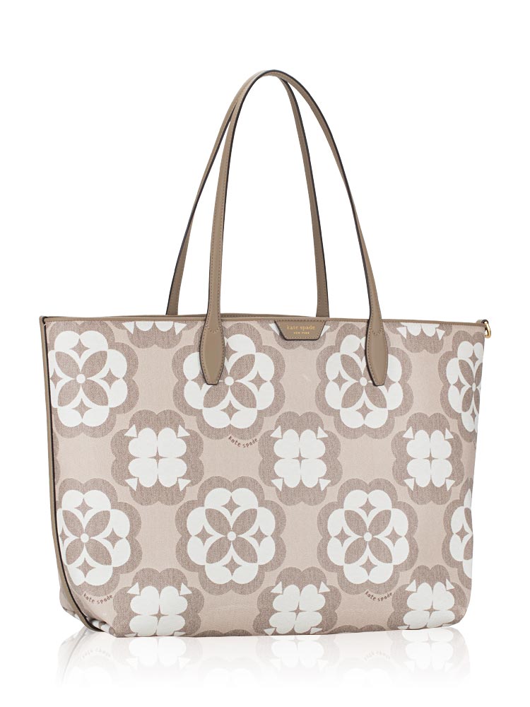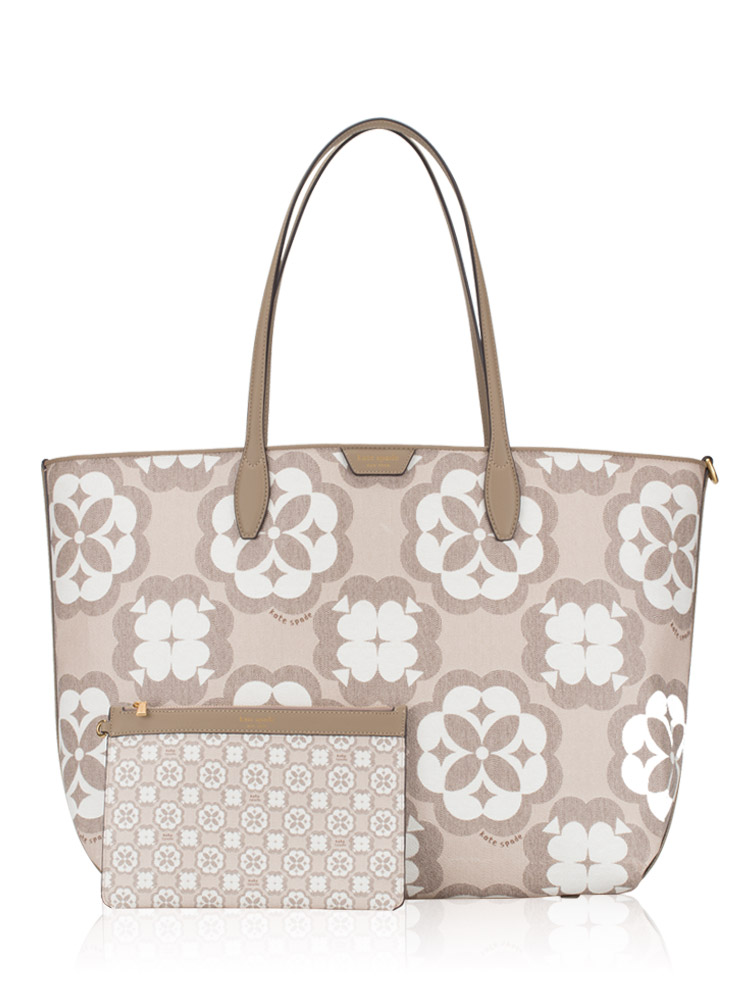 The new spade flower monogram coated canvas pays homage to old world elegance. it’s durable, easy to wipe clean and will hold up no matter what beautiful chaos the day brings.