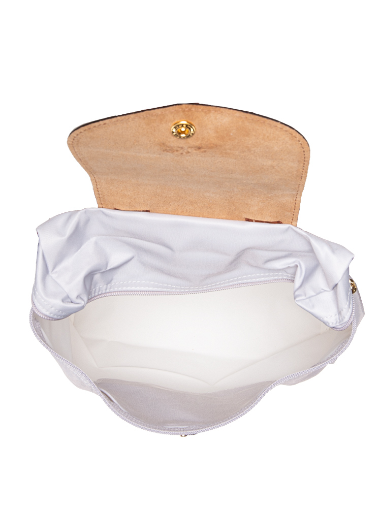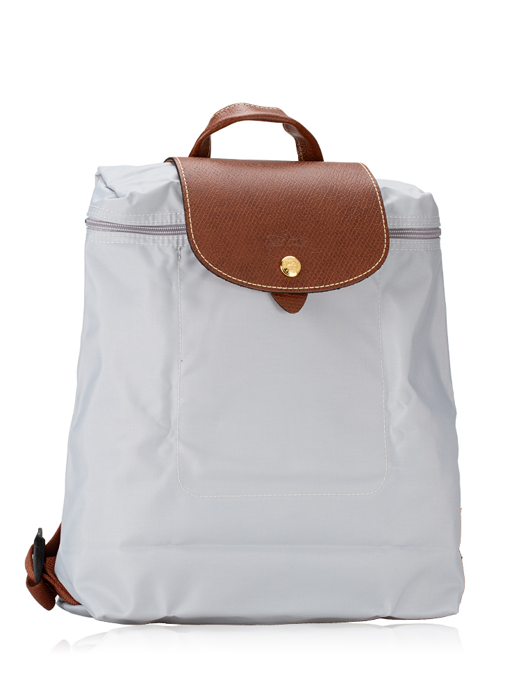 This ultra-lightweight nylon canvas backpack with snap closure leather flap has all the signature features of the Le Pliage bag, Longchamp emblematic design. It features a top handle, zip closure, and an inside slip pocket.
