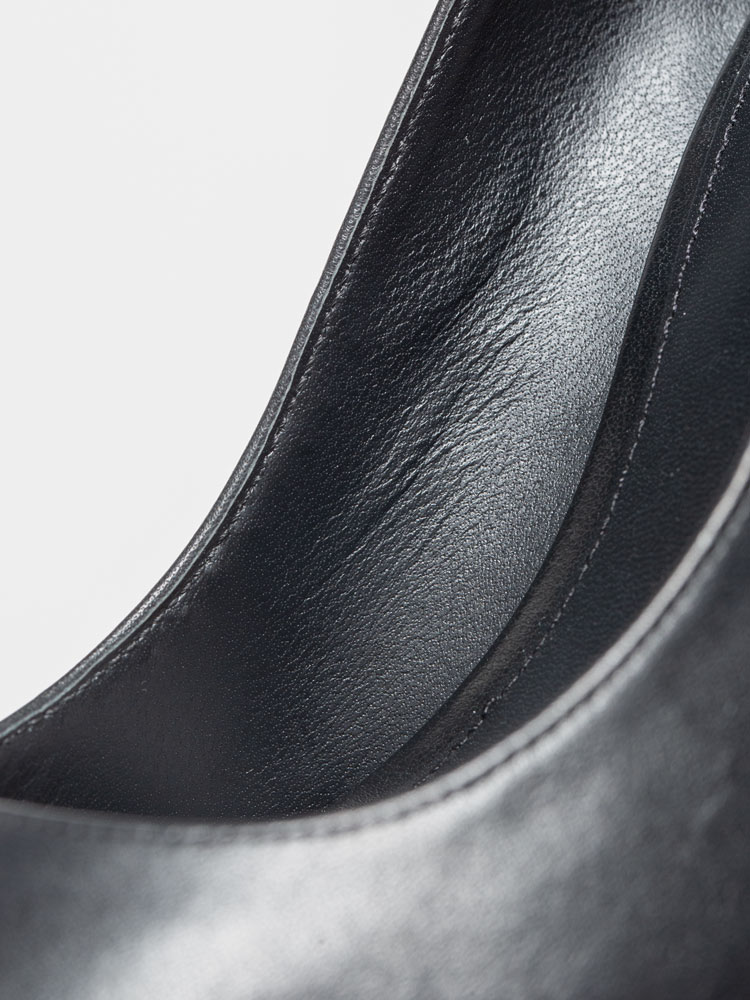 A head-turner with ’80s appeal, our Luna pump combines a high-cut vamp with a sharply pointed toe and an architectural metallic heel. Sleek smooth leather make this pair a versatile partner to both day and night looks.
