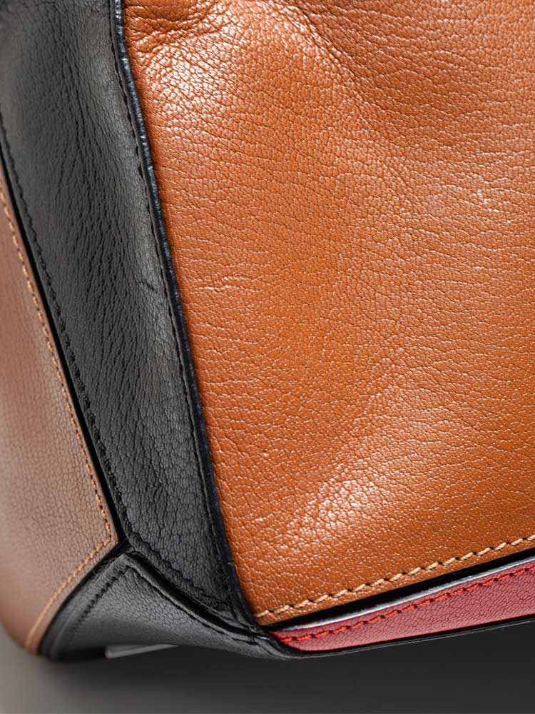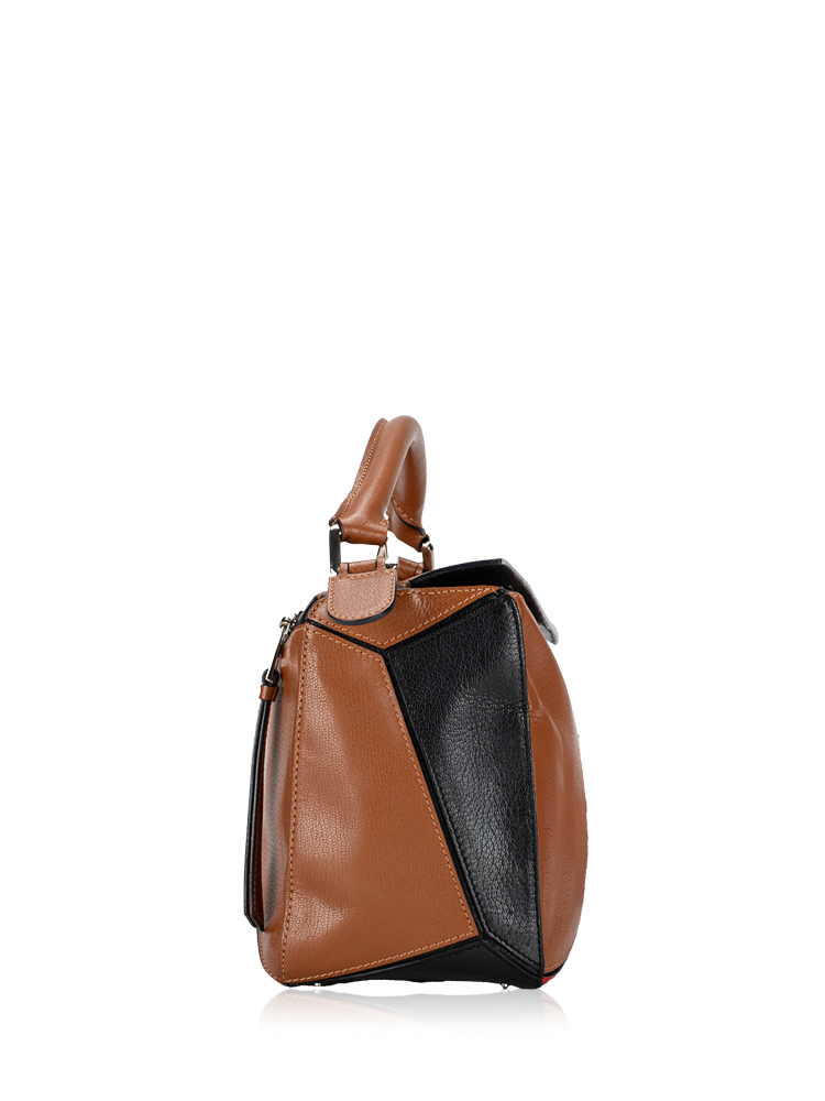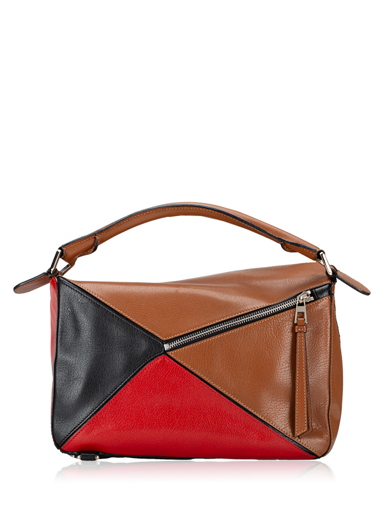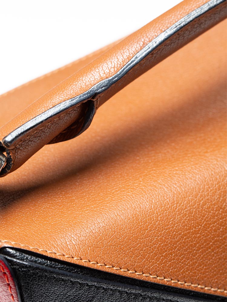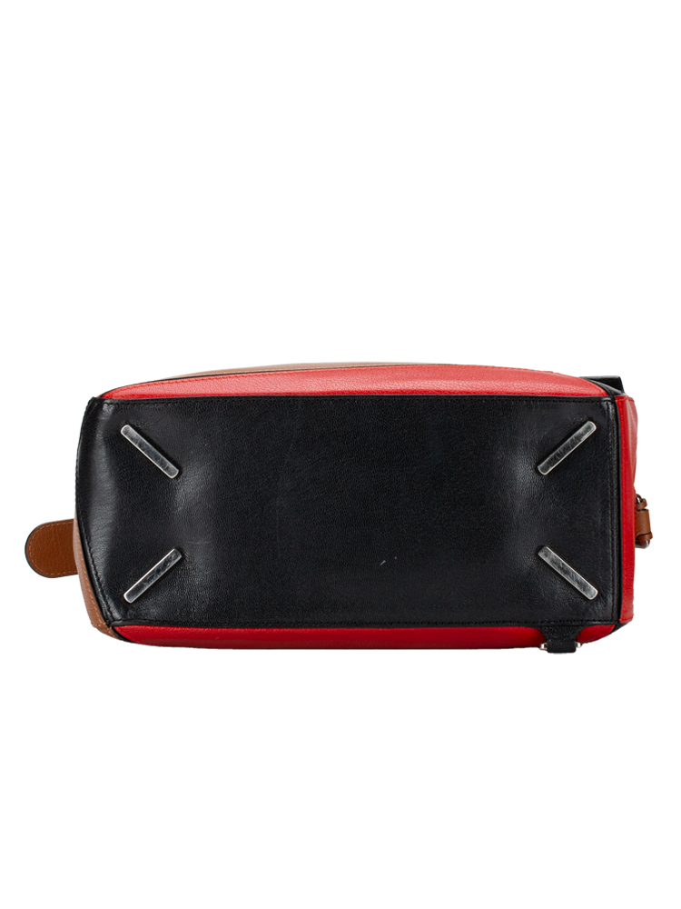 Goatskin Medium Puzzle Bag Tan Black Red