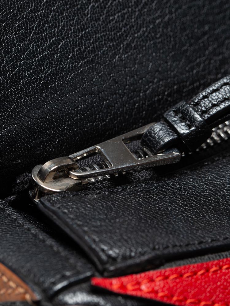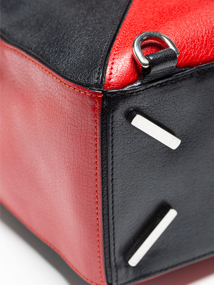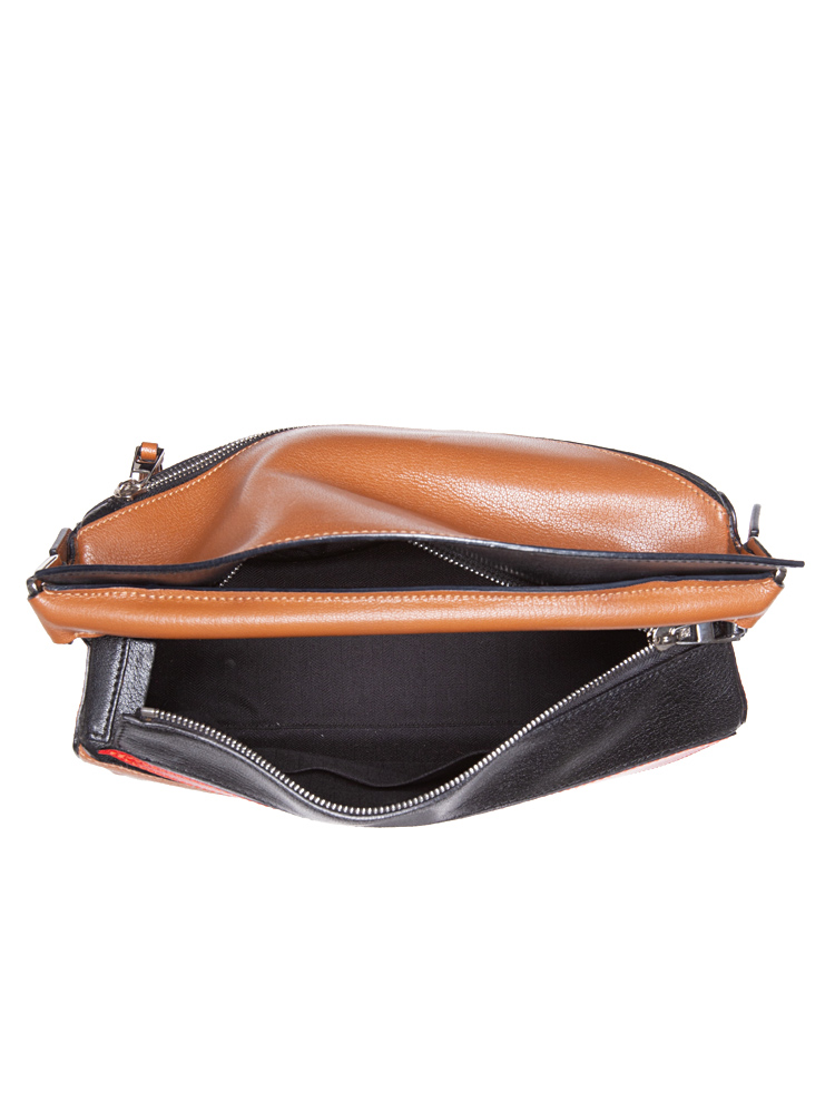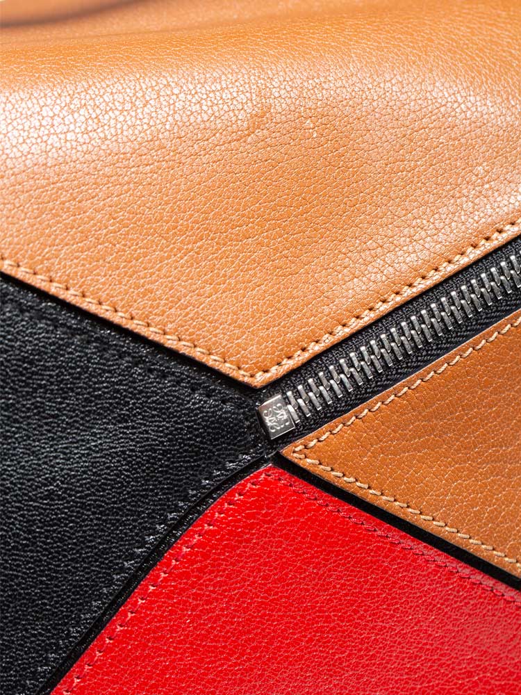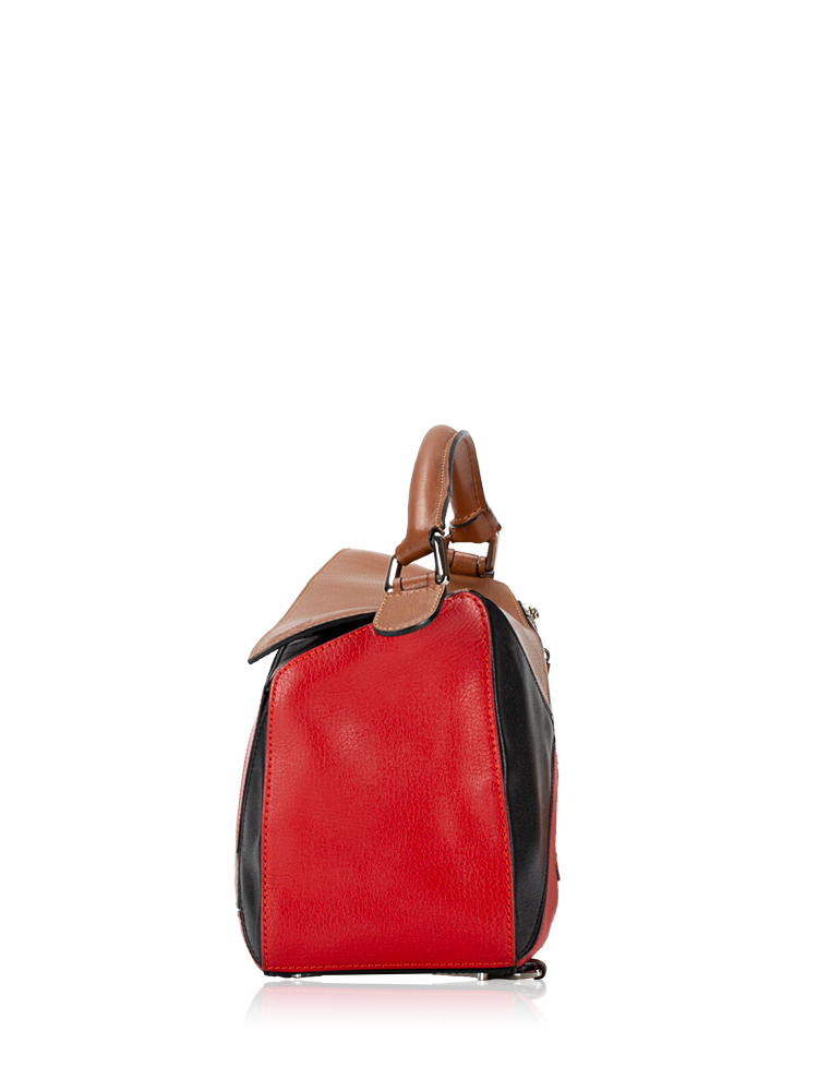 Goatskin Medium Puzzle Bag Tan Black Red