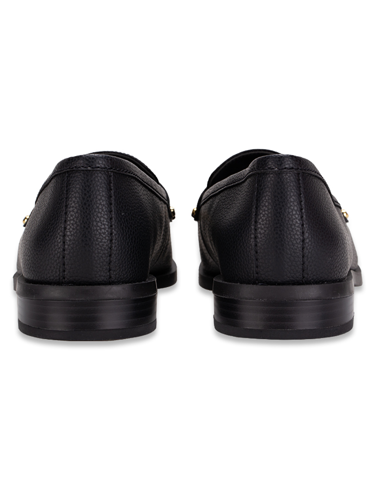 Made of leather. It features gold tone hardware, smooth leather lining, and loafer style.