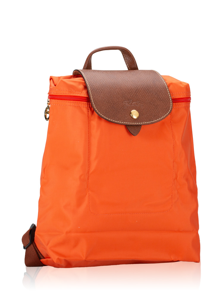 This ultra-lightweight nylon canvas backpack with snap closure leather flap has all the signature features of the Le Pliage bag, Longchamp emblematic design. It features a top handle, zip closure, and an inside slip pocket.