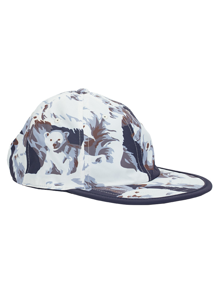 Crafted of Nylon, velvet and sparkling embroidery featuring patterns. All-over Polar Bear print on one side, monochrome on other. Drawstring with stopper at back for adjusting fit