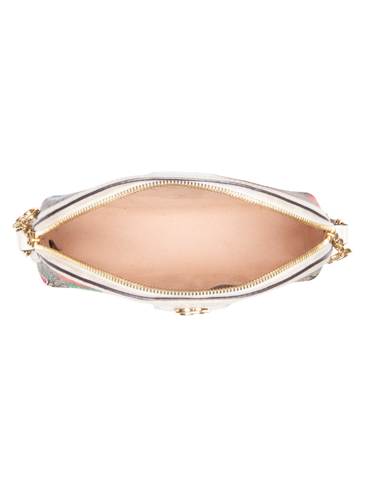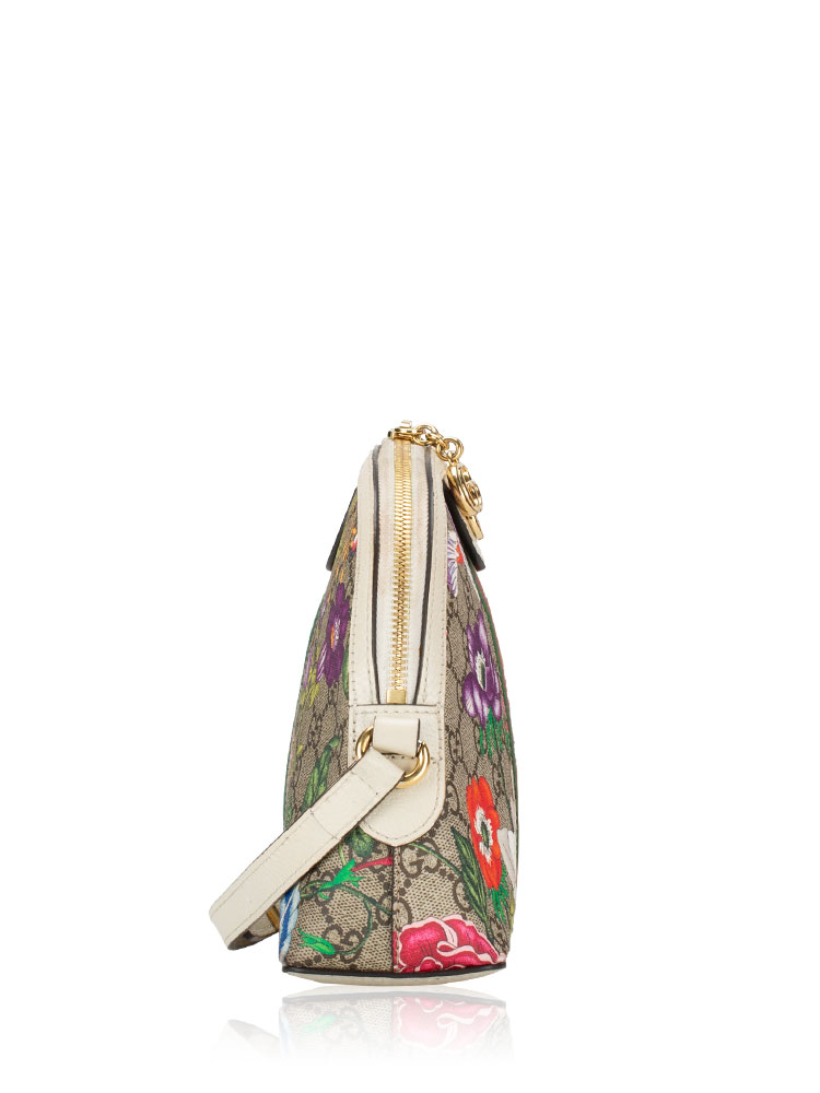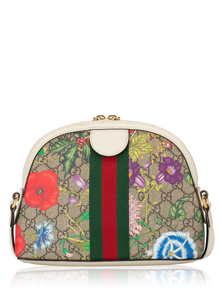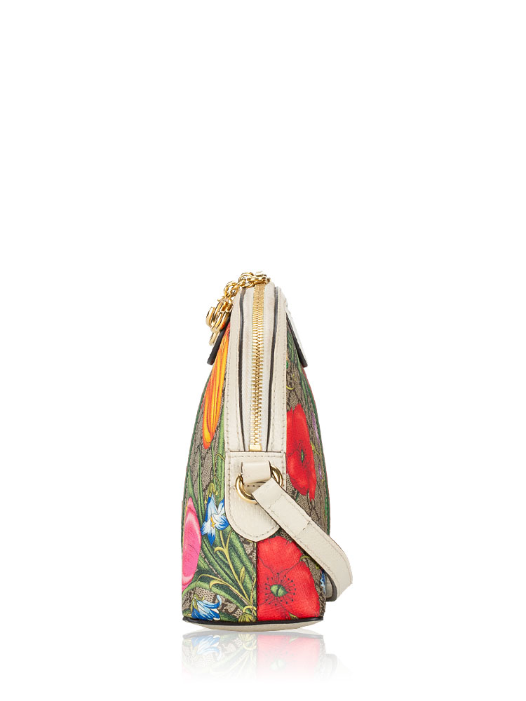GG Supreme Web Ophidia Flora Dome Small Shoulder Bag White