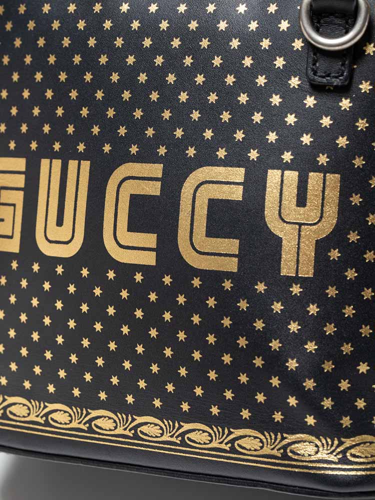 X SEGA GUCCY Stars Mini Dome Shoulder Bag Black Gold