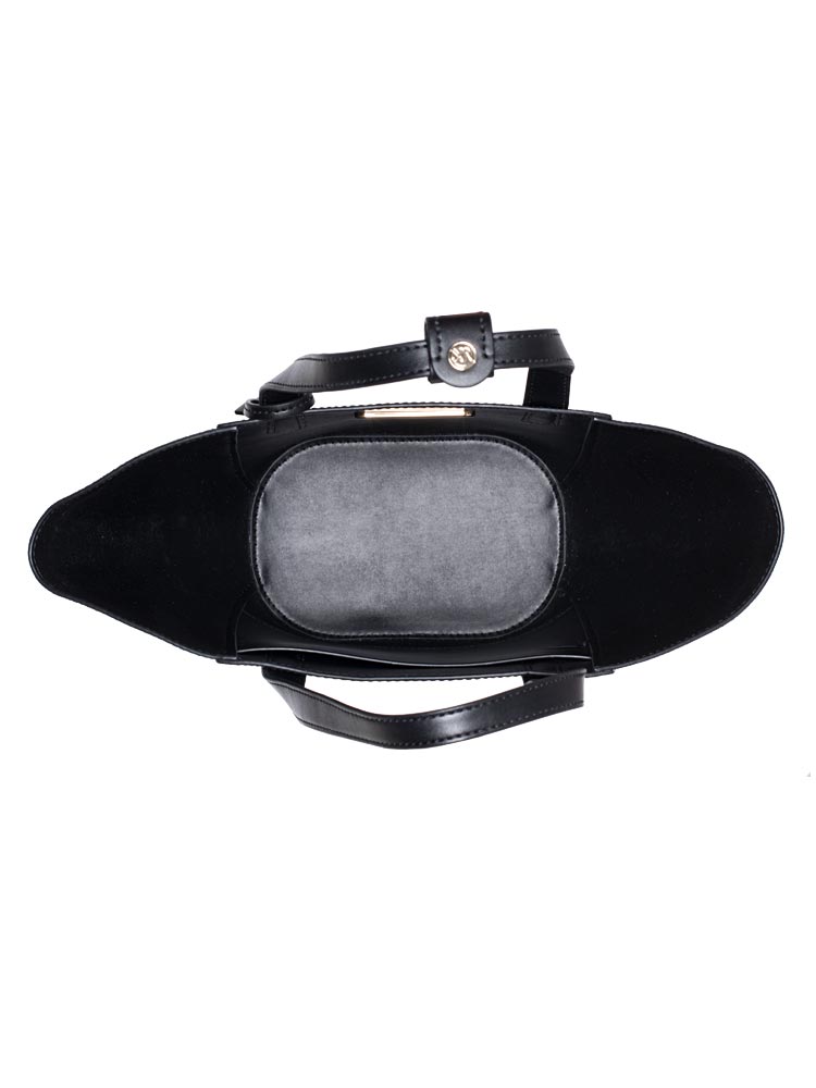 Crafted from leather and suede material. It features an open button snap at handle, gold tone hardware and one slip pocket.