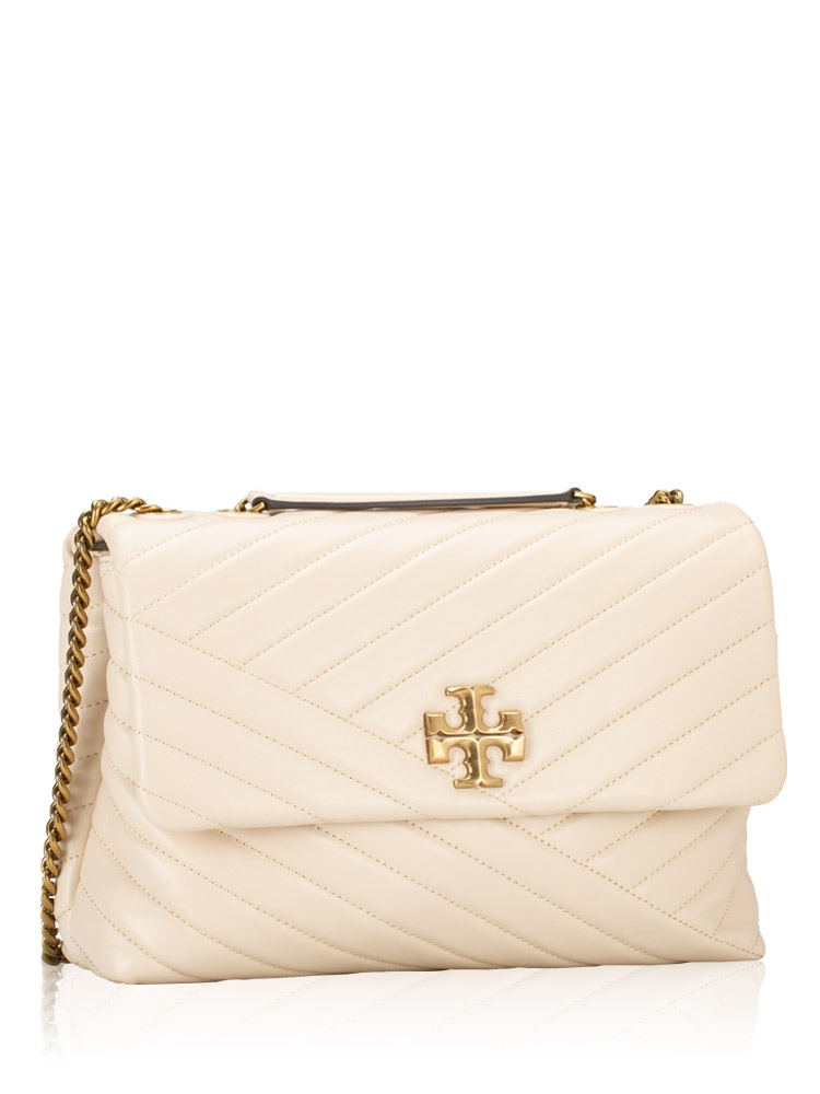 Kira Chevron Convertible Shoulder Bag New Cream Gold