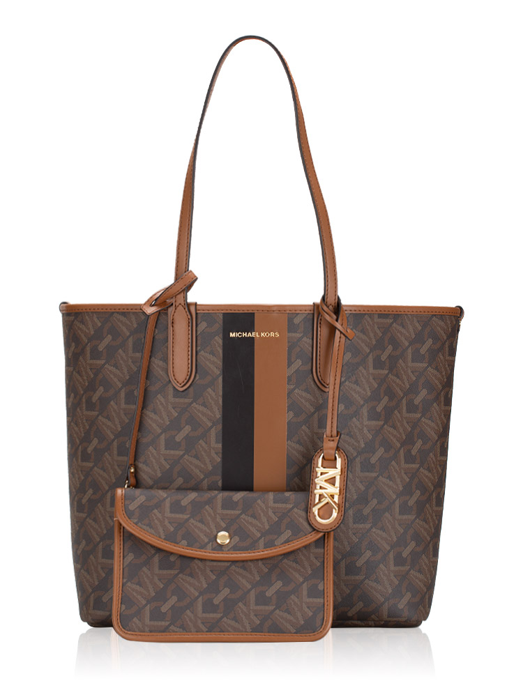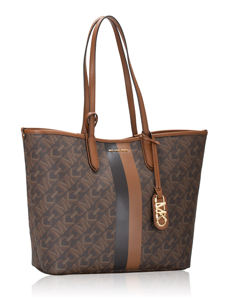 Monogram Eliza Stripe Large EW Open Tote Brown Luggage