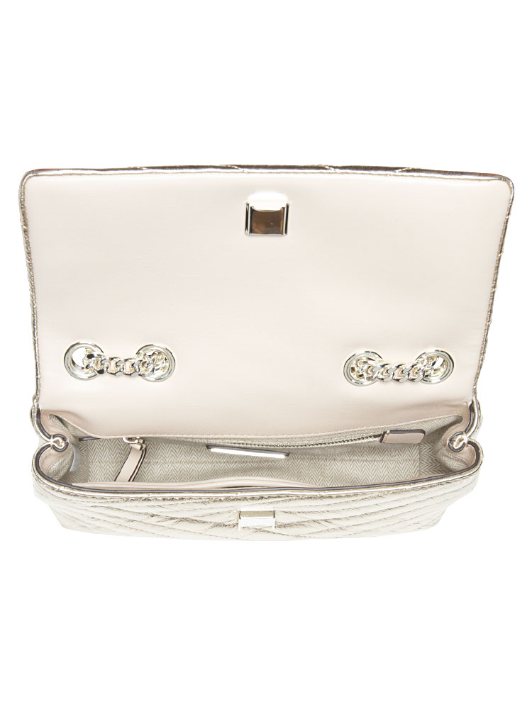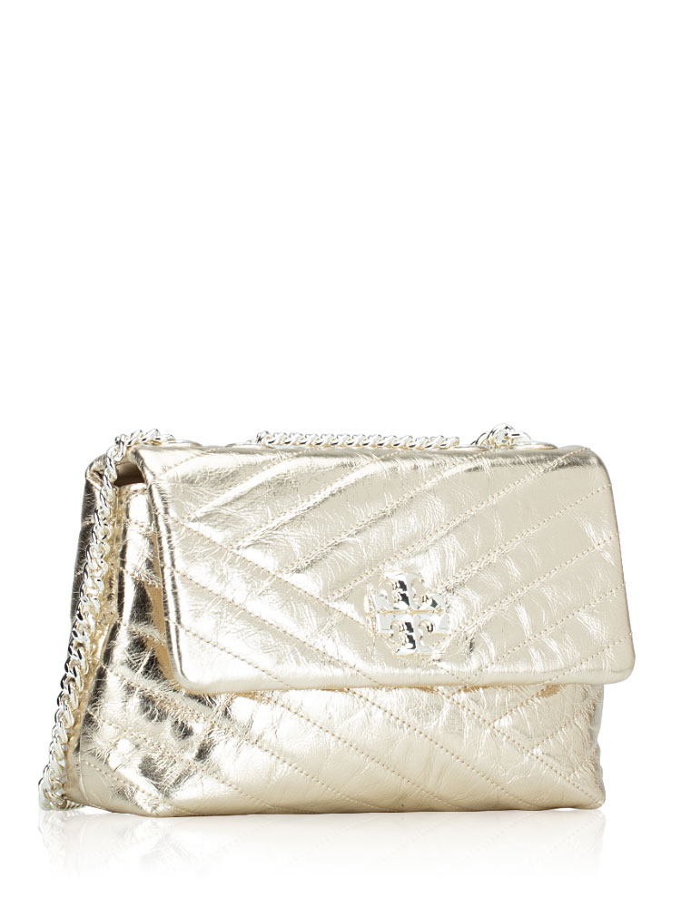 Kira Chevron Metallic Small Convertible Shoulder Bag Gold
