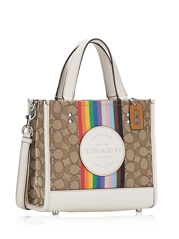 CJ576 Signature Dempsey Rainbow Stripe 22 Tote Khaki Multi