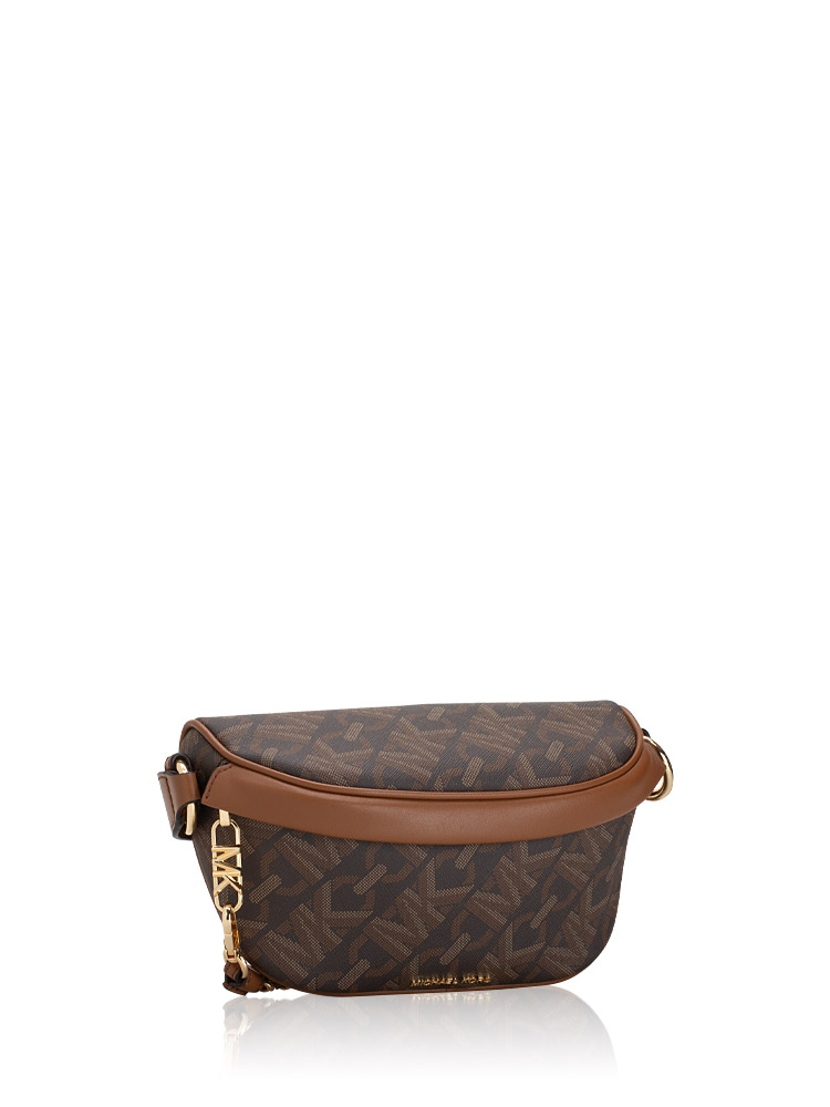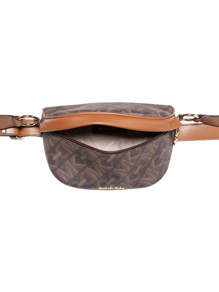 Signature coated canvas with logo polyester lining. The bag features ab open zip closure, gold tone hardware, one eksterior rear zip pocket and adjustable belt bag wear.