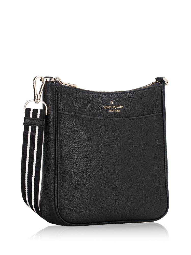 Made of pebbled leather. The bag features a zip closure that opens to polyester lining with one slip pocket, one zip pocket, exterior one slip pocket at front, removable Pochette, adjustable and removable long strap.