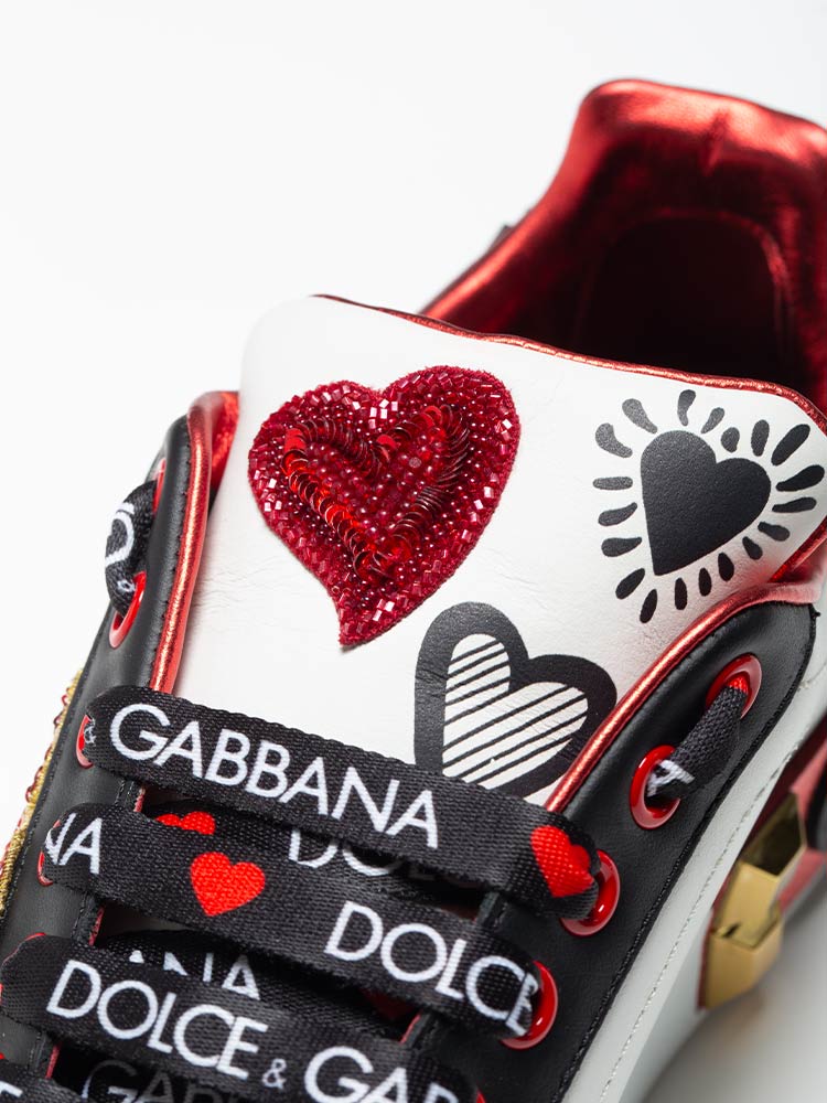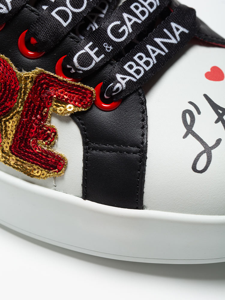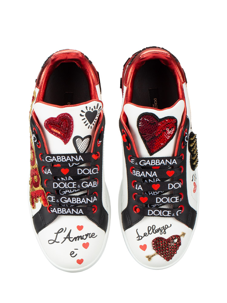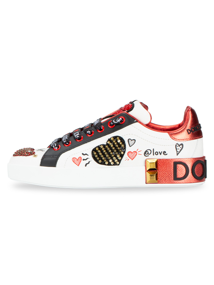 These shoes are crafted of calfskin material with Heart Embroidered, Sequins, studs and lettering on upper material.