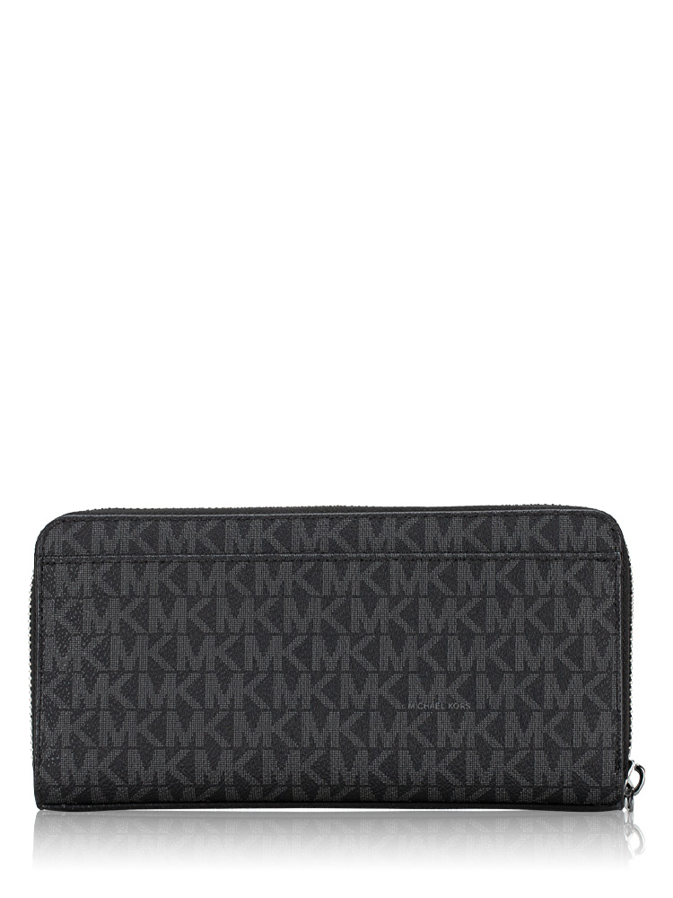 Signature coated canvas with polyester lining. The wallet features an open zip closure, silver tone hardware, 8 card slots, 2 compartments, 1 slip phone and 2 slip multifunction compartments.