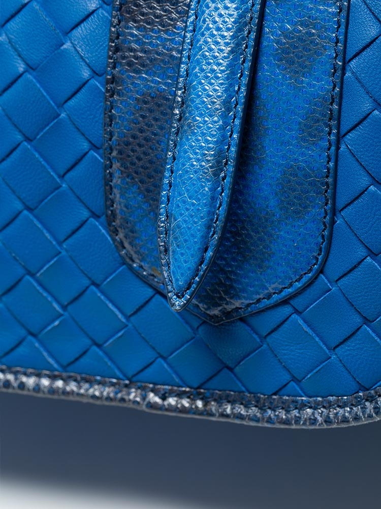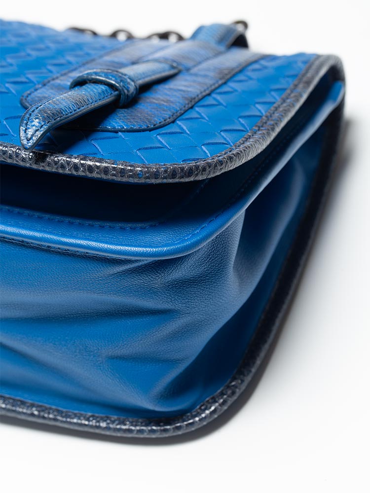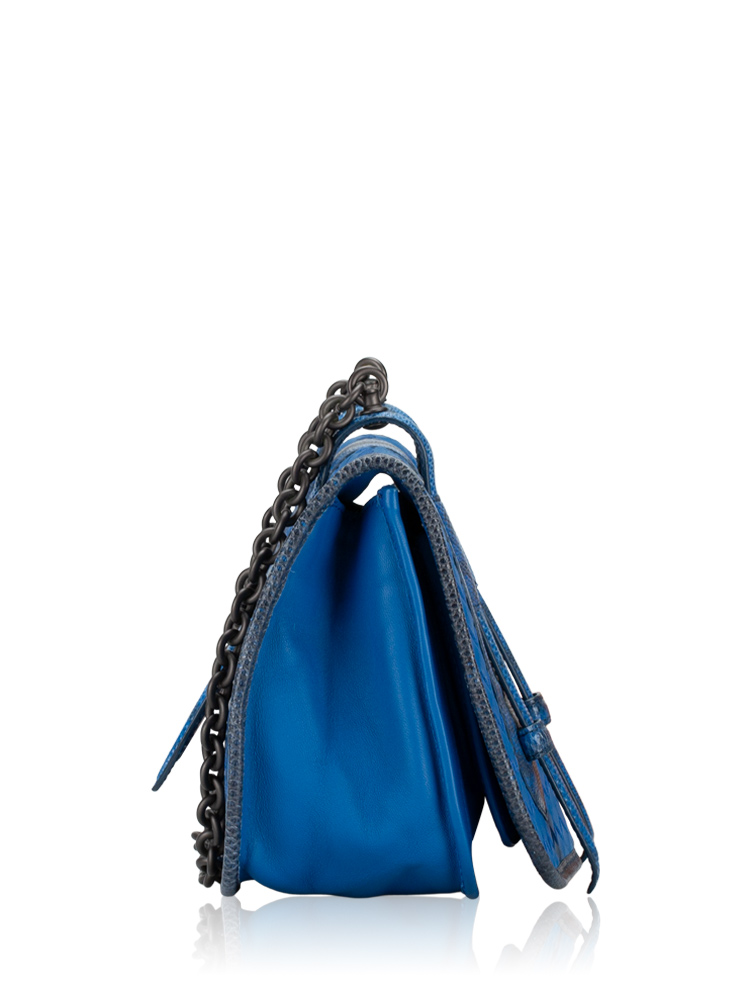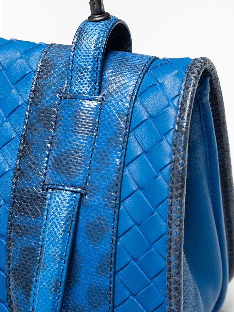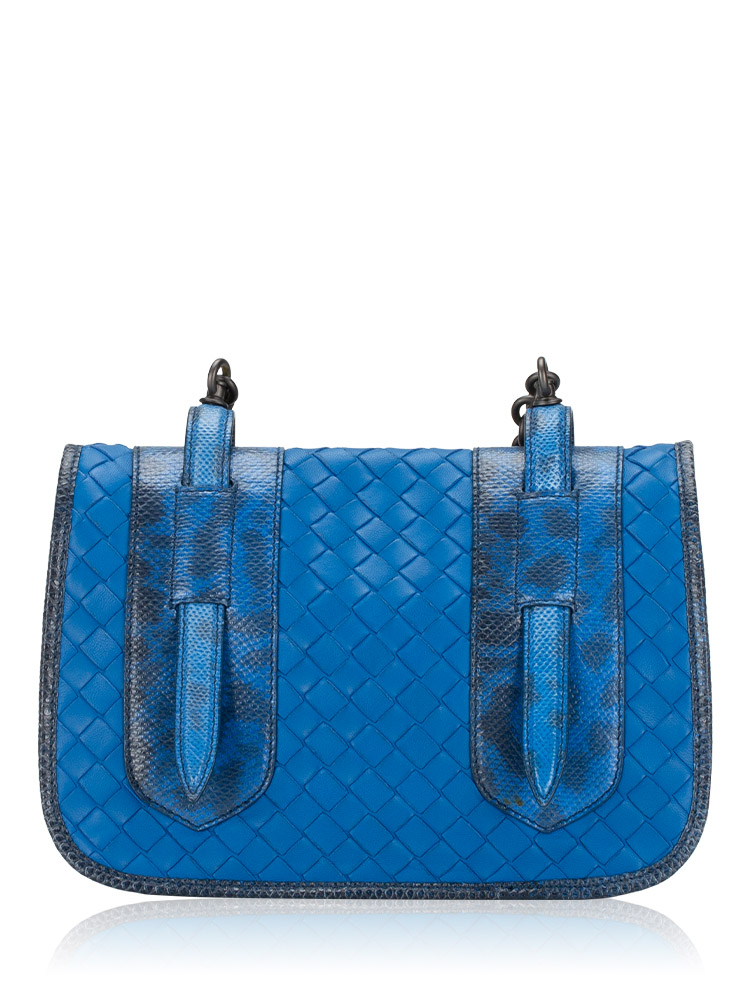 Nappa Intrecciato Snakeskin Chain Crossbody Blue