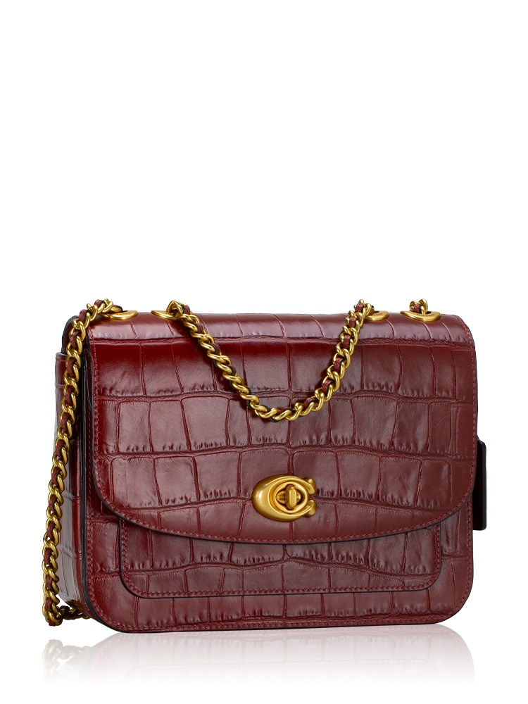 C6288 Madison Embossed Croco Shoulder Bag Wine