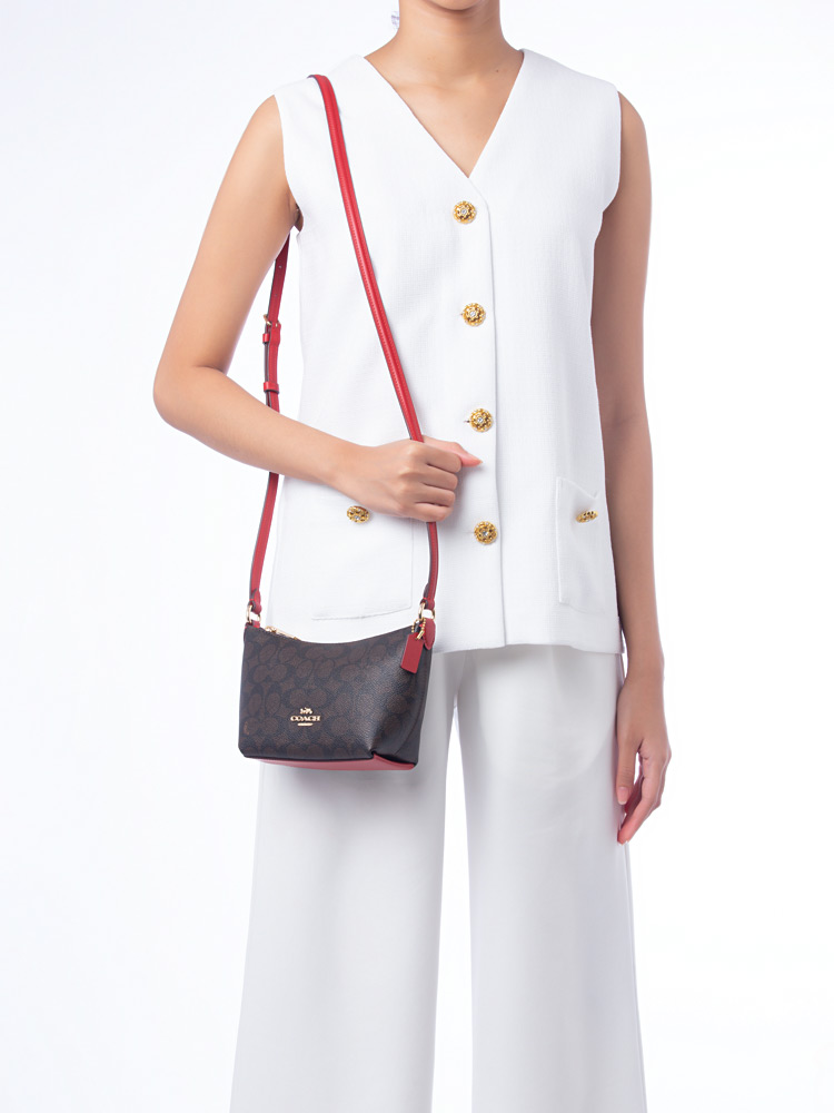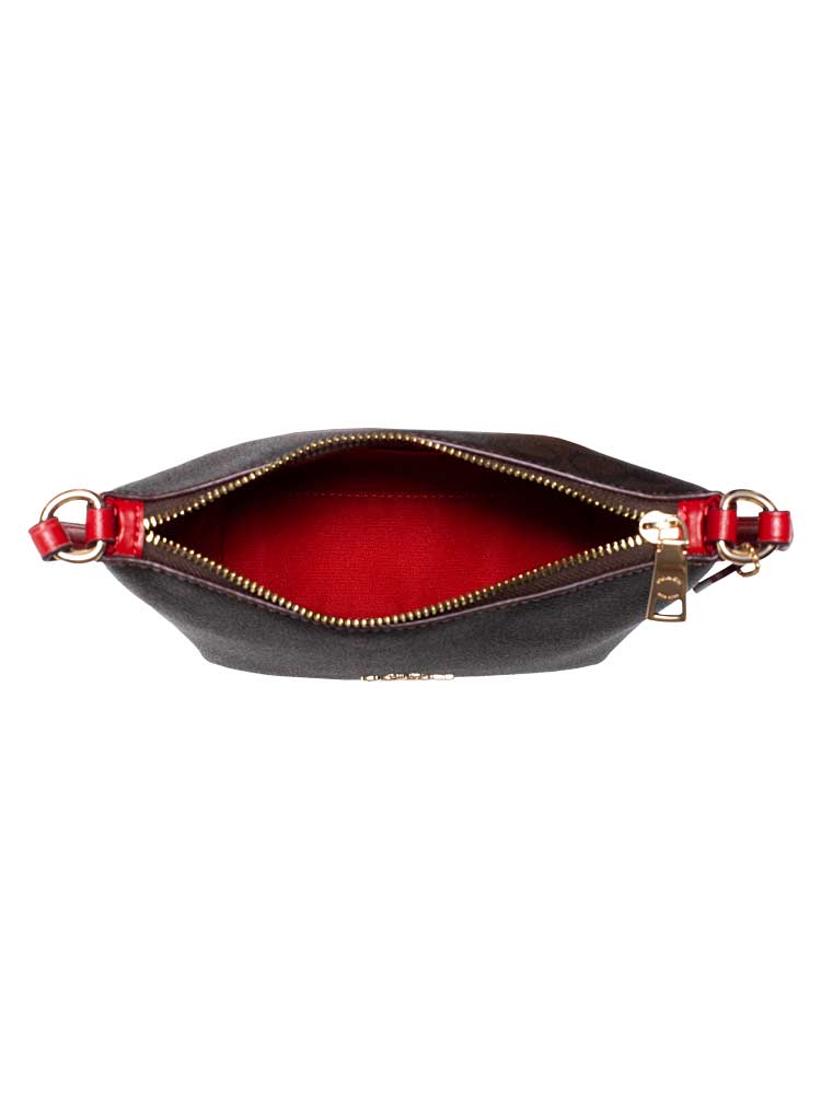 CX604 Signature Zip Crossbody Walnut Bold Red