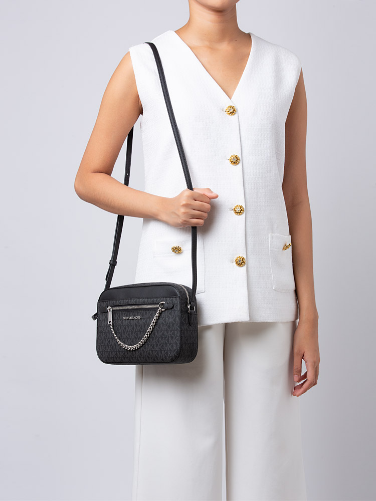 Jet Set Item Signature Large East West Zip Chain Crossbody Black
