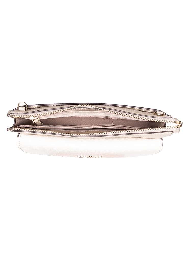 Made of pebble leather with polyester lining. The bag features an open zip closure, gold tone hardware, one zip pocket, twelve card slots, one multifunction slip pocket and one eksterior slip pocket with button magnetic flap closure.