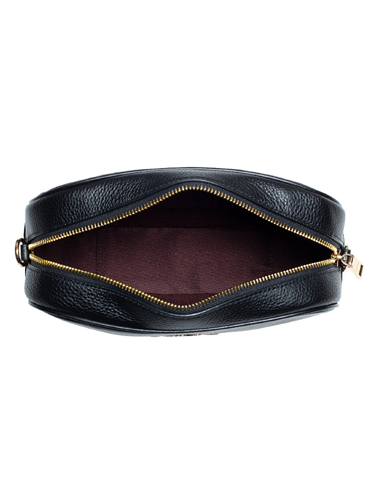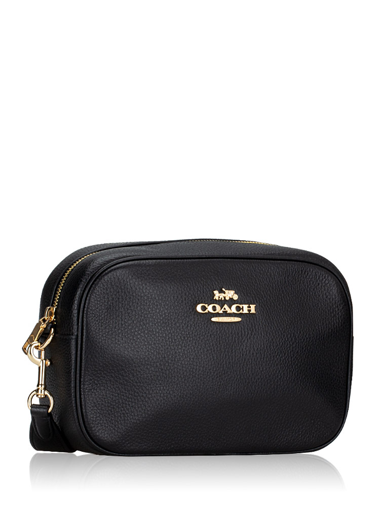 Crafted from refined pebble leather. Inside multifunction pocket. Zip closure, fabric lining. Outside open pocket. Detachable strap with 21 3/4 inc drop for shoulder or crossbody wear.
