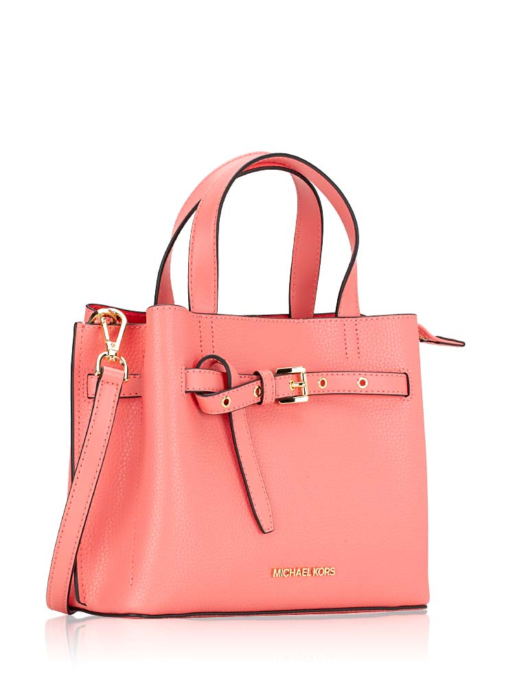 Emilia Small Pebbled Leather Satchel Grapefruit