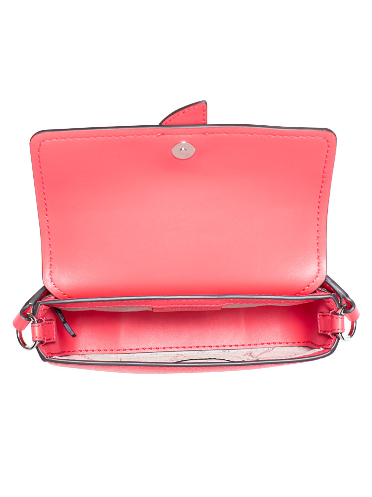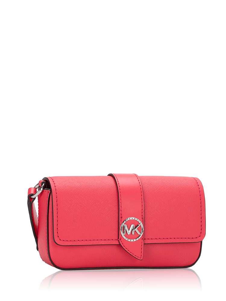 Made of saffiano leather with polyester lining and smooth leather interior. It features an open button flap closure, gold tone hardware, 2 card slots, and 1 rear eksterior slip pocket.