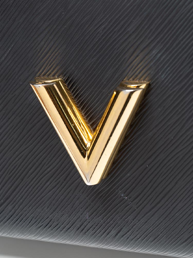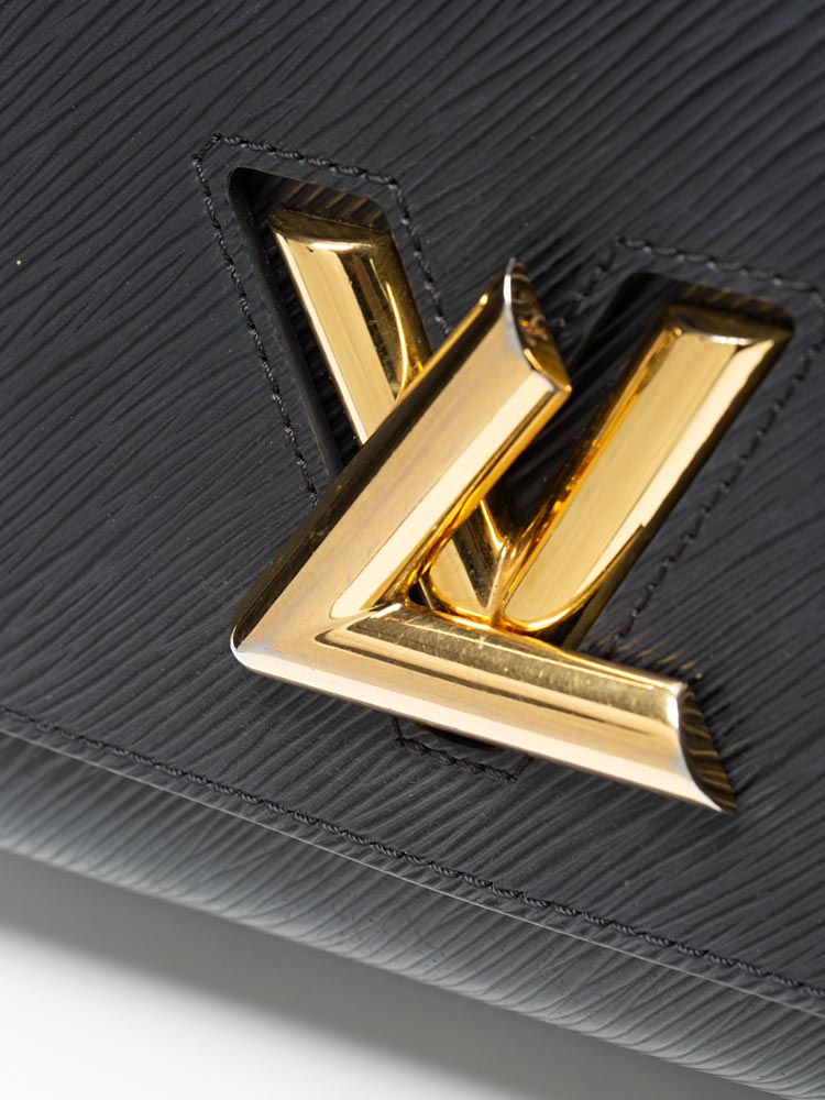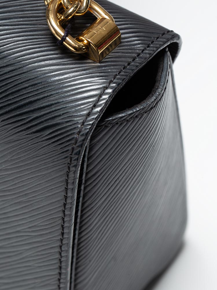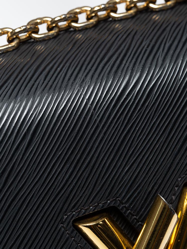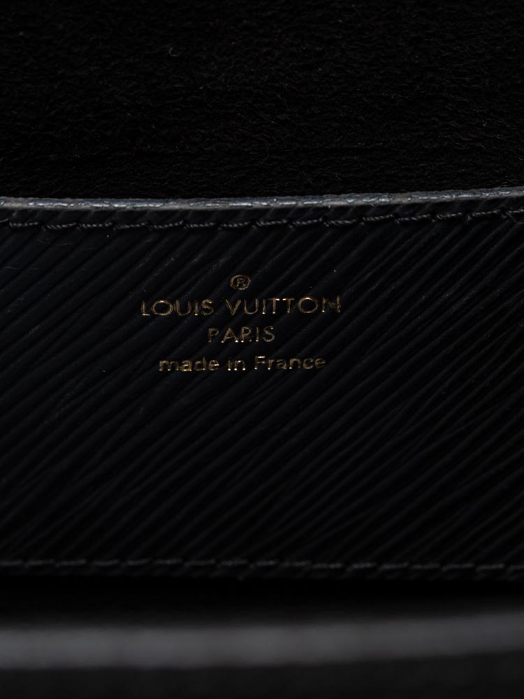 Crafted of textured epi leather. Features a gold chain shoulder strap with a leather shoulder pad and a gold LV twist lock on the facing flap. This opens to a microfiber interior with patch pockets.