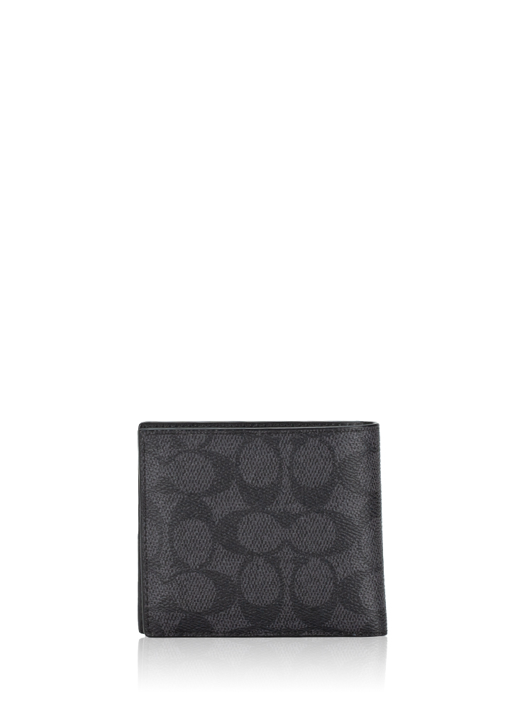 Men 5012 Signature Coin Bifold Wallet Charcoal Black