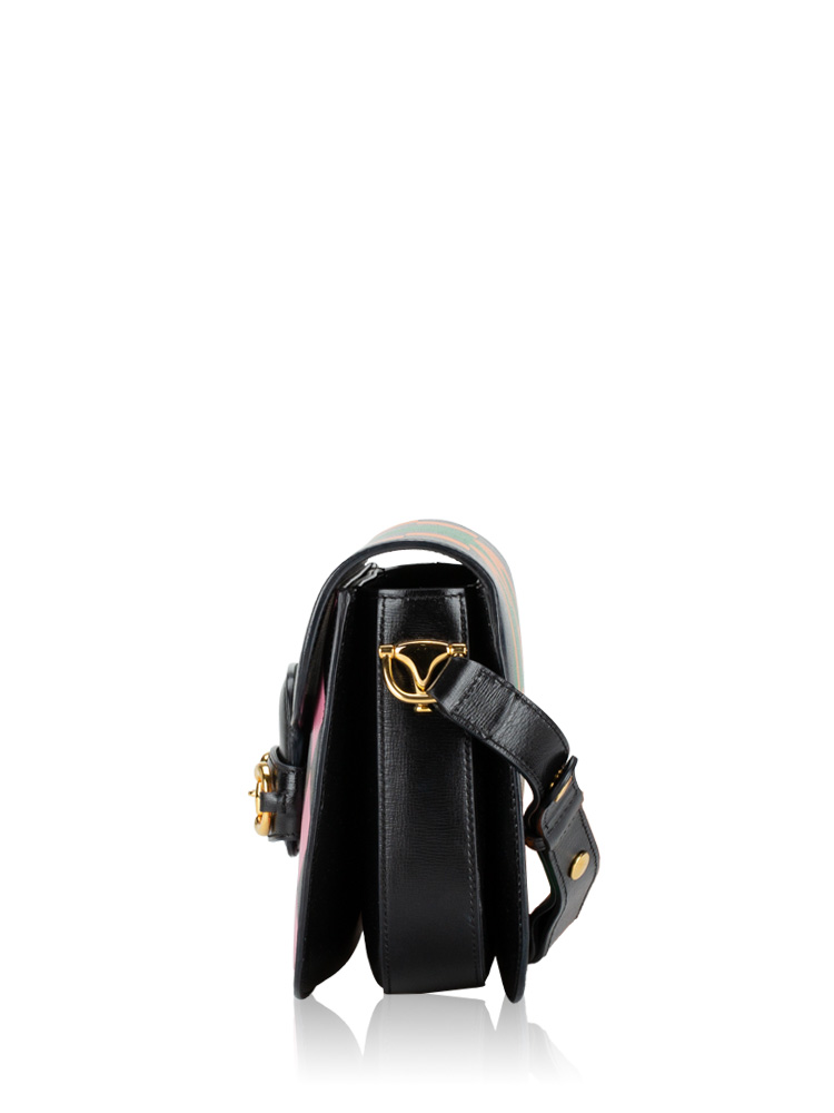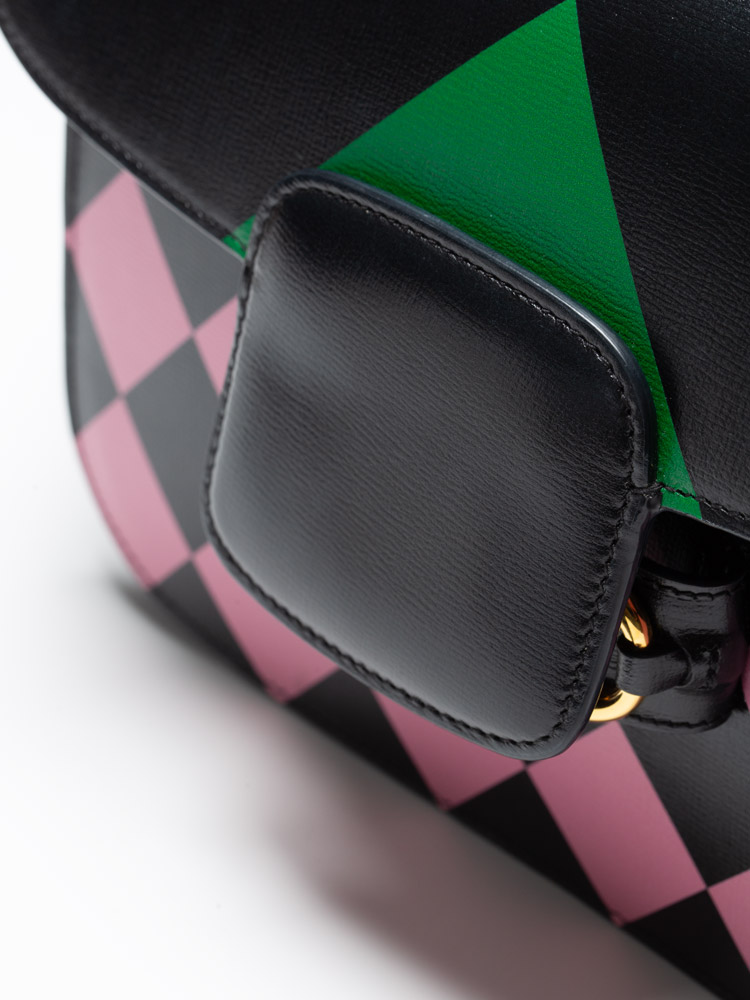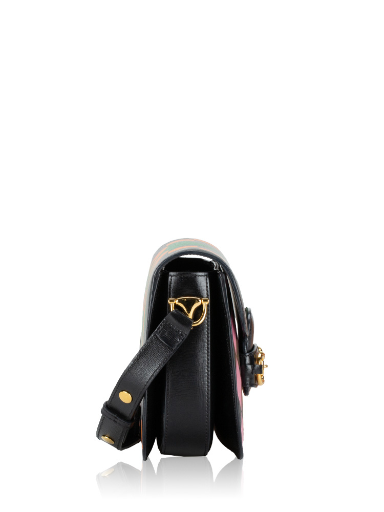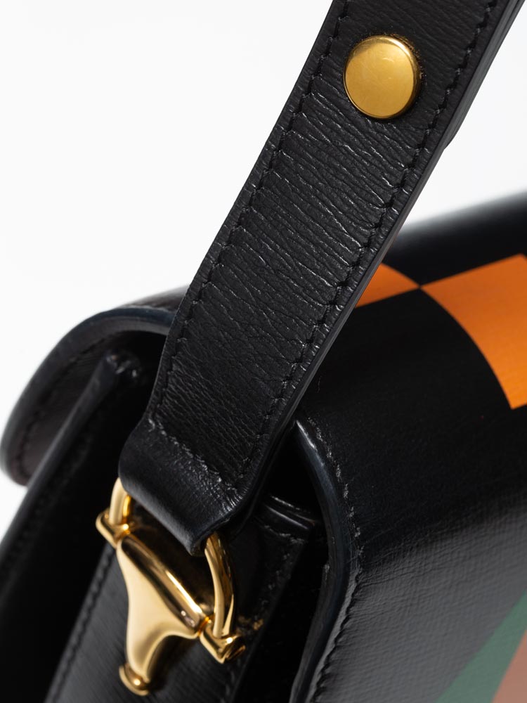 Calfskin Geometric Print 1955 Horsebit Bag Black