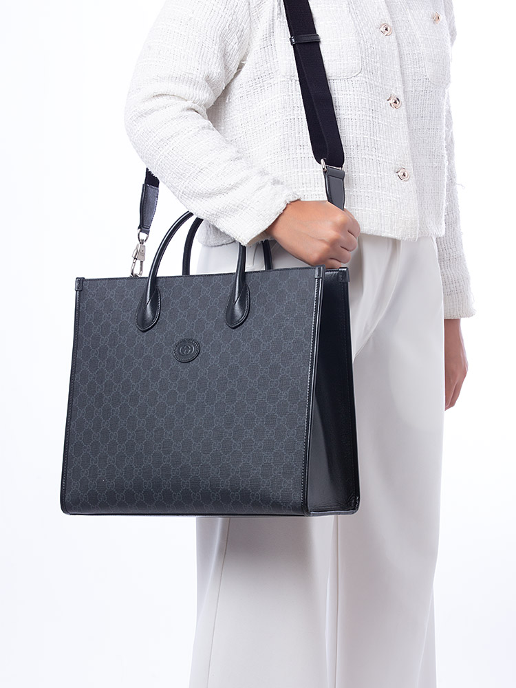 GG Supreme Retro Interlocking G Medium Tote Black