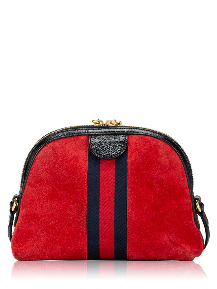 Suede GG Ophidia Small Dome Shoulder Bag Hibiscus Red