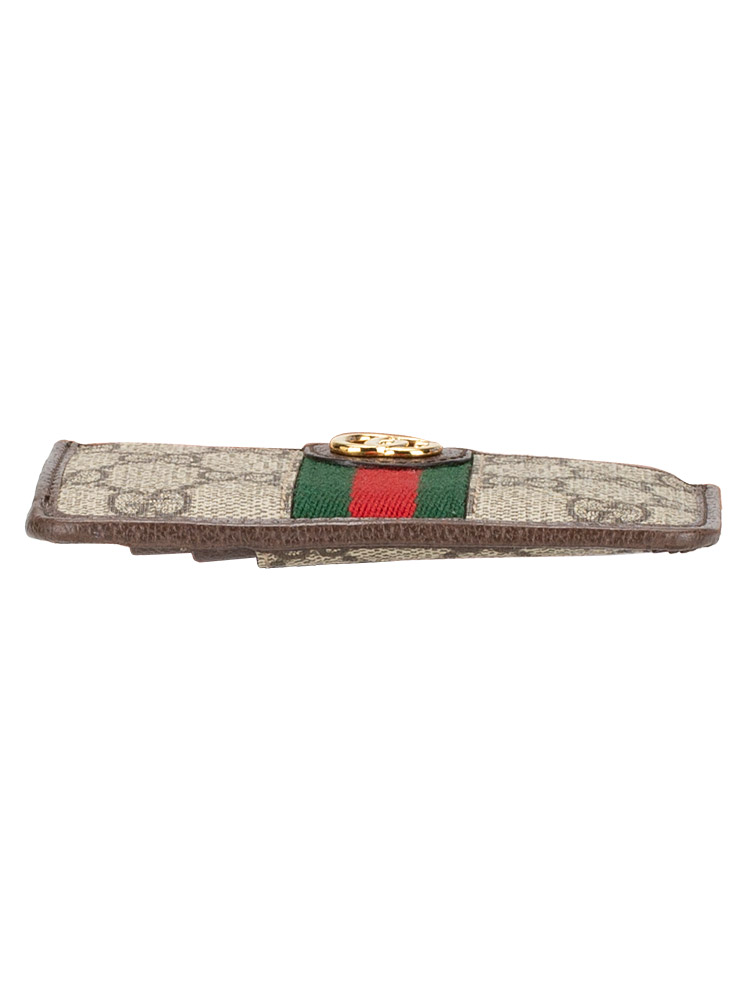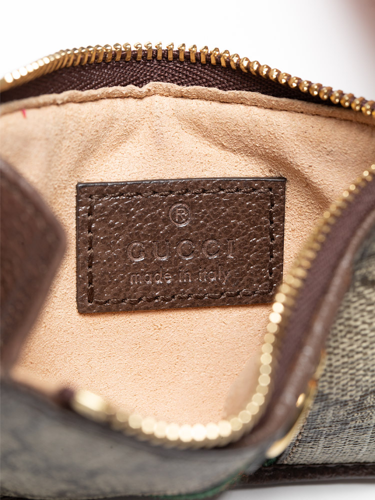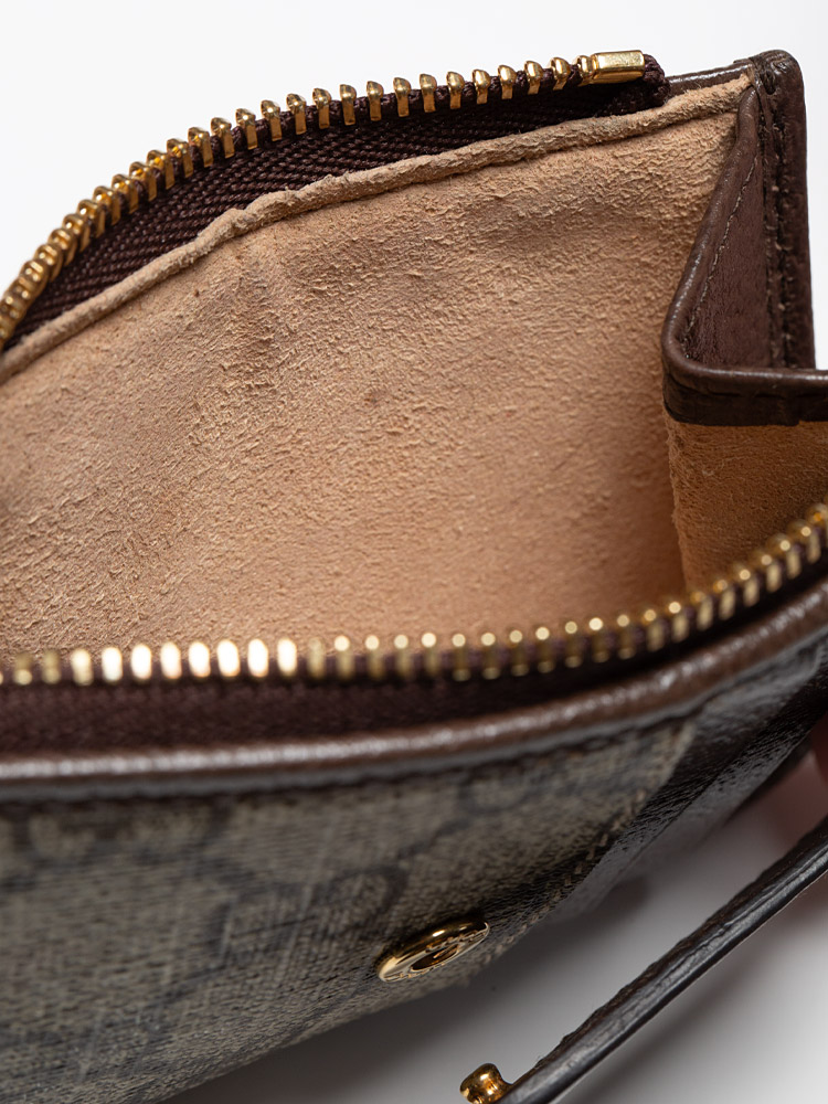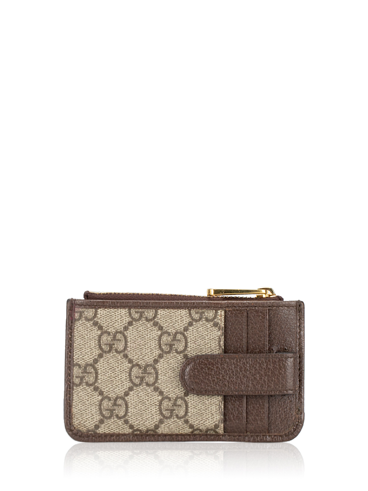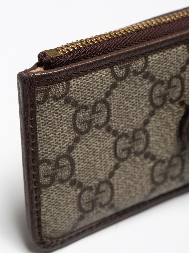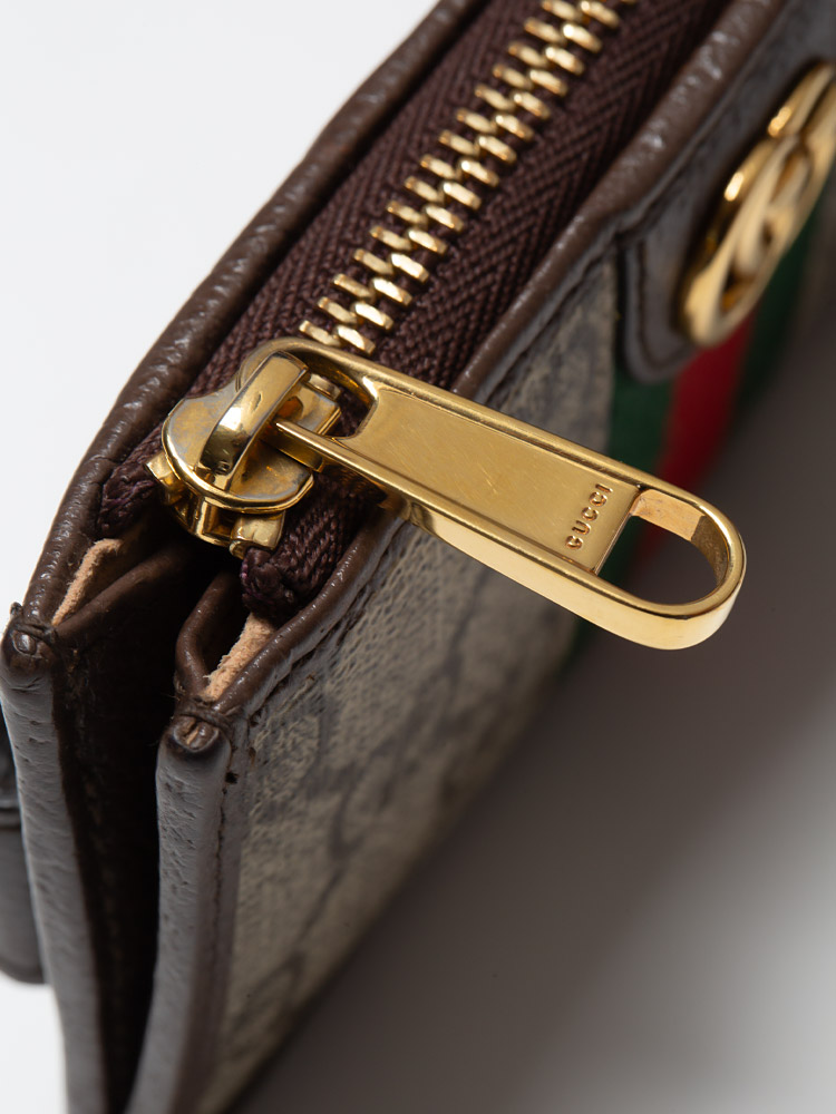 GG Supreme Web Ophidia Zip Card Case Beige Brown Sugar