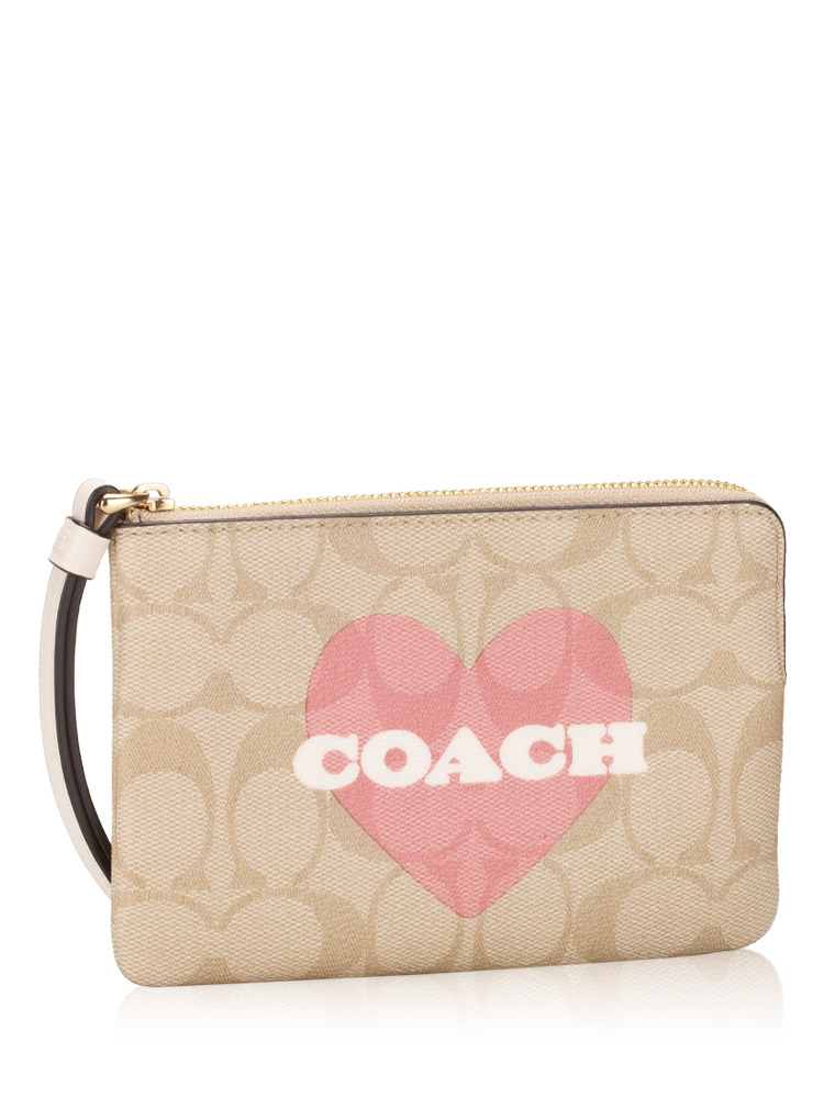 CP436 Signature With Heart Print Corner Zip Wristlet Light Khaki Chalk Multi