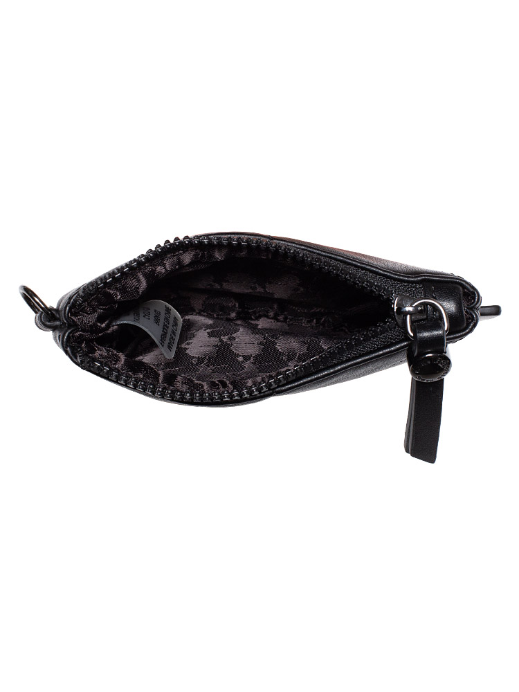 Made of nylon material. The lanyard features a zip closure that opens to polyester lining with removable pouch.