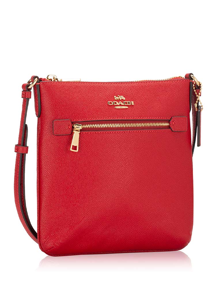 Crafted of crossgrain leather, it accented with gold-tone hardware. This bag features a top zip closure that leads to main compartment and a front zip pocket.