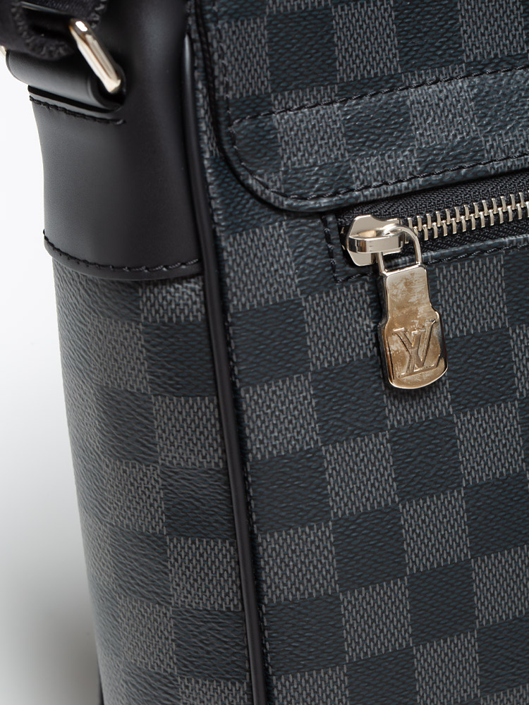 This bag is crafted of Louis Vuitton damier check coated canvas. Features with a canvas cross-body strap with silver adjustment hardware and links with a full facing flap, an exterior zipper pocket.