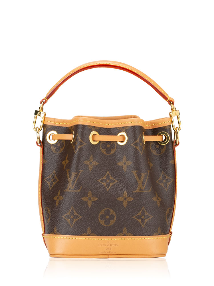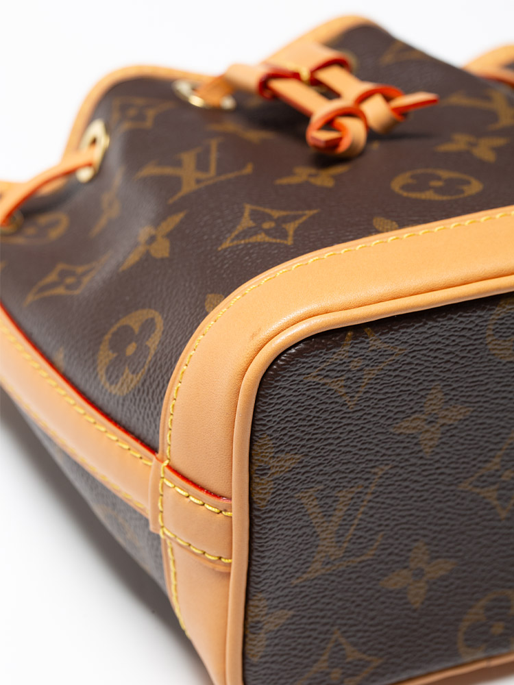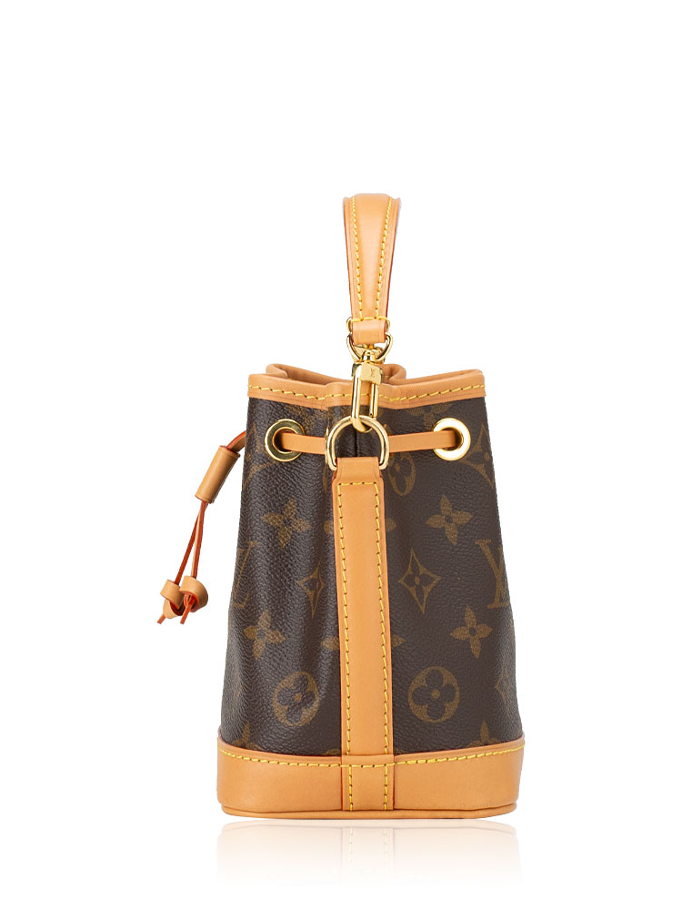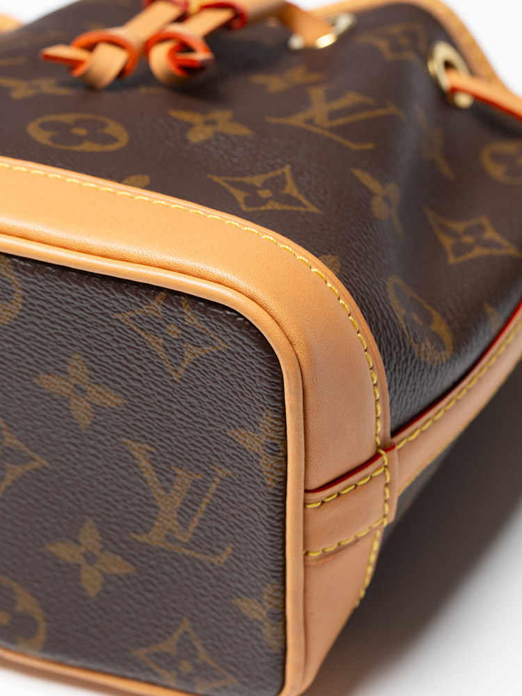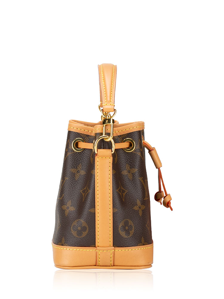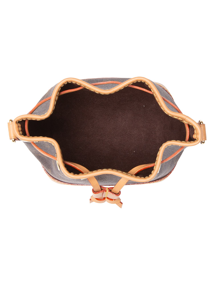 This bag is crafted of Louis Vuitton monogram on coated canvas. Features with vachetta leather including a shoulder strap, a cinch cord, and piping with brass hardware. The top opens to a microfiber interior.
