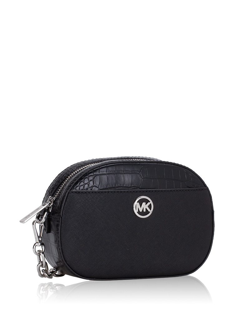 Jet Set Glam Leather Small Front Pocket Oval Crossbody Black