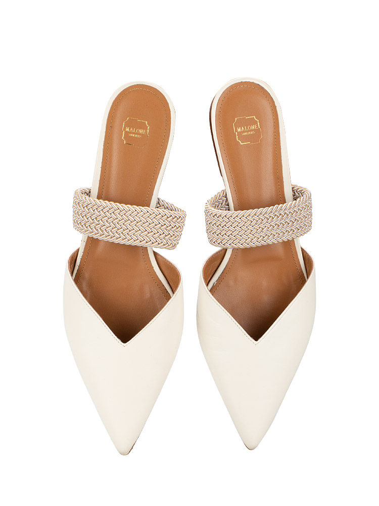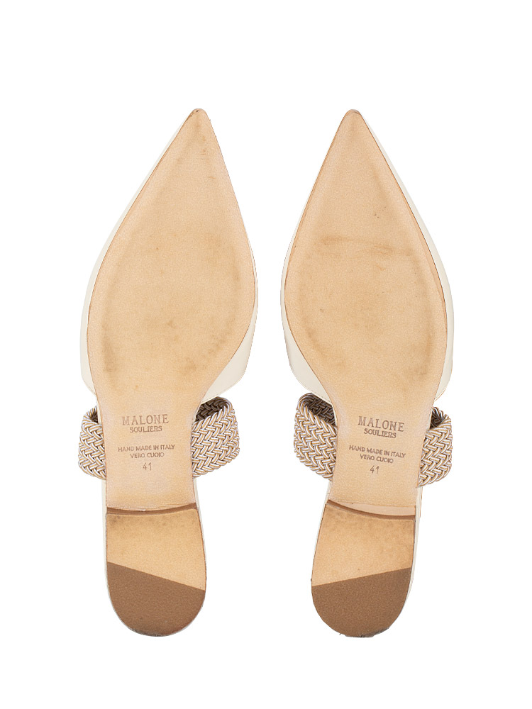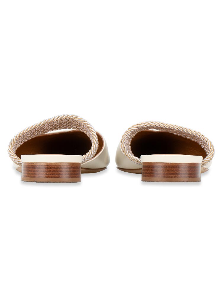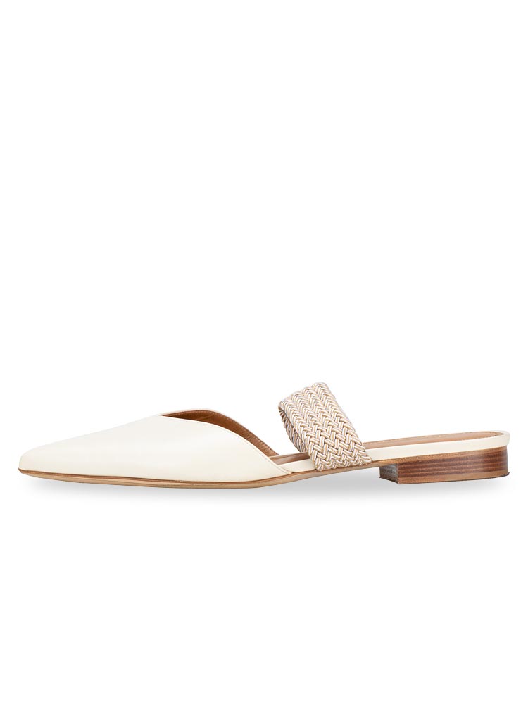 Maisie Leather Flat Mules Cream Sz 41
