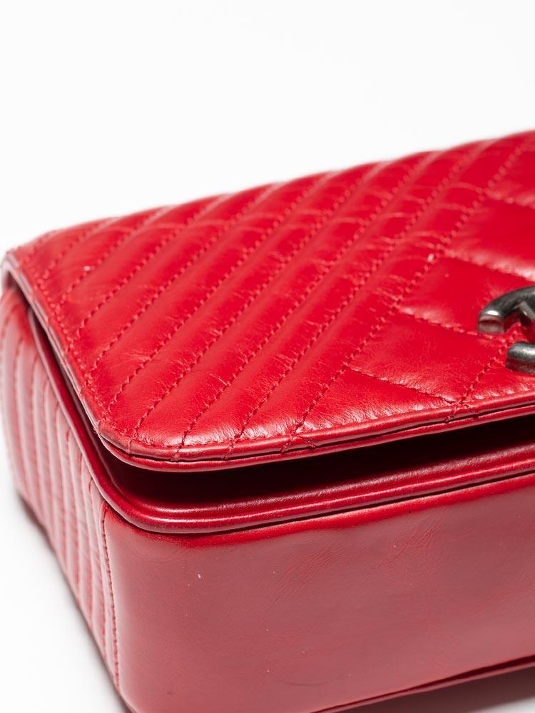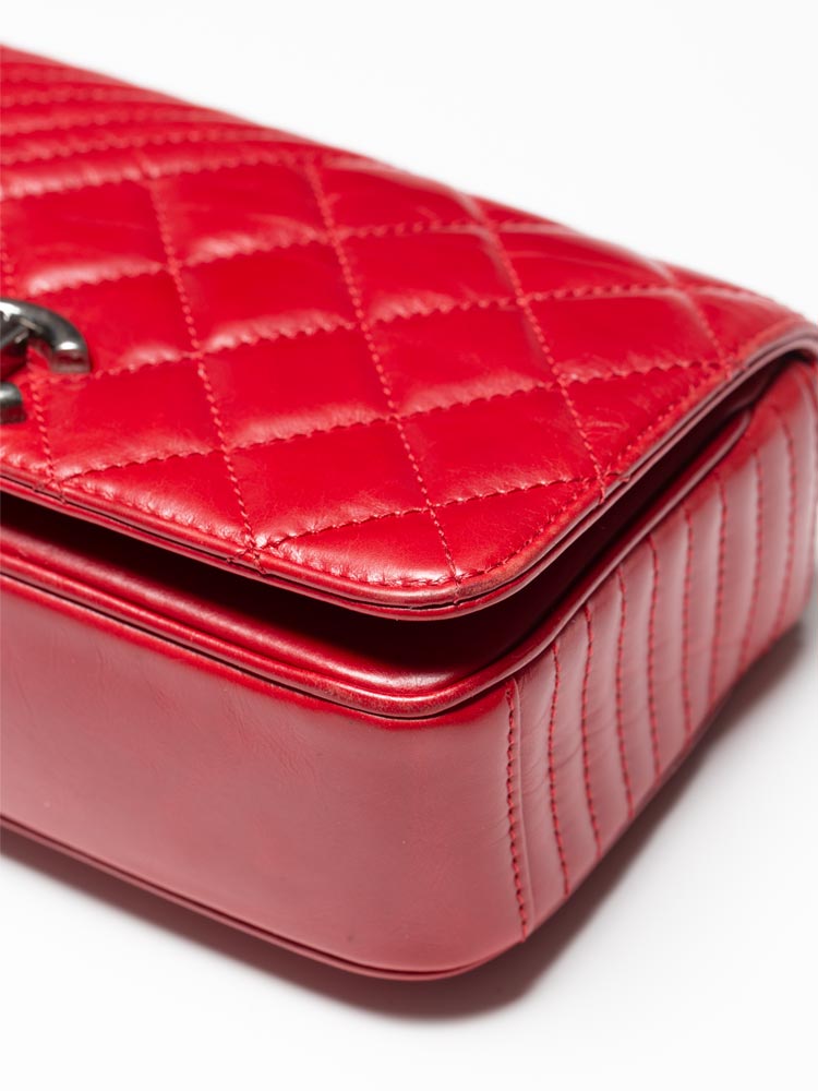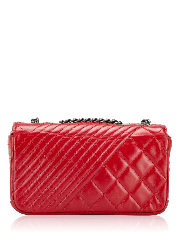 Glazed Calfskin Small Coco Boy Flap Bag Red