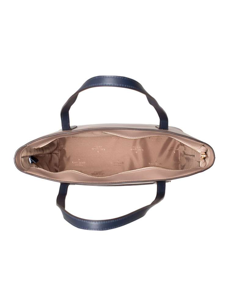 Crafted of saffiano. It features a zip closure that opens to a lined interior with a zip pocket, and 2 slip pockets. It has double long handles to make it easy to carry