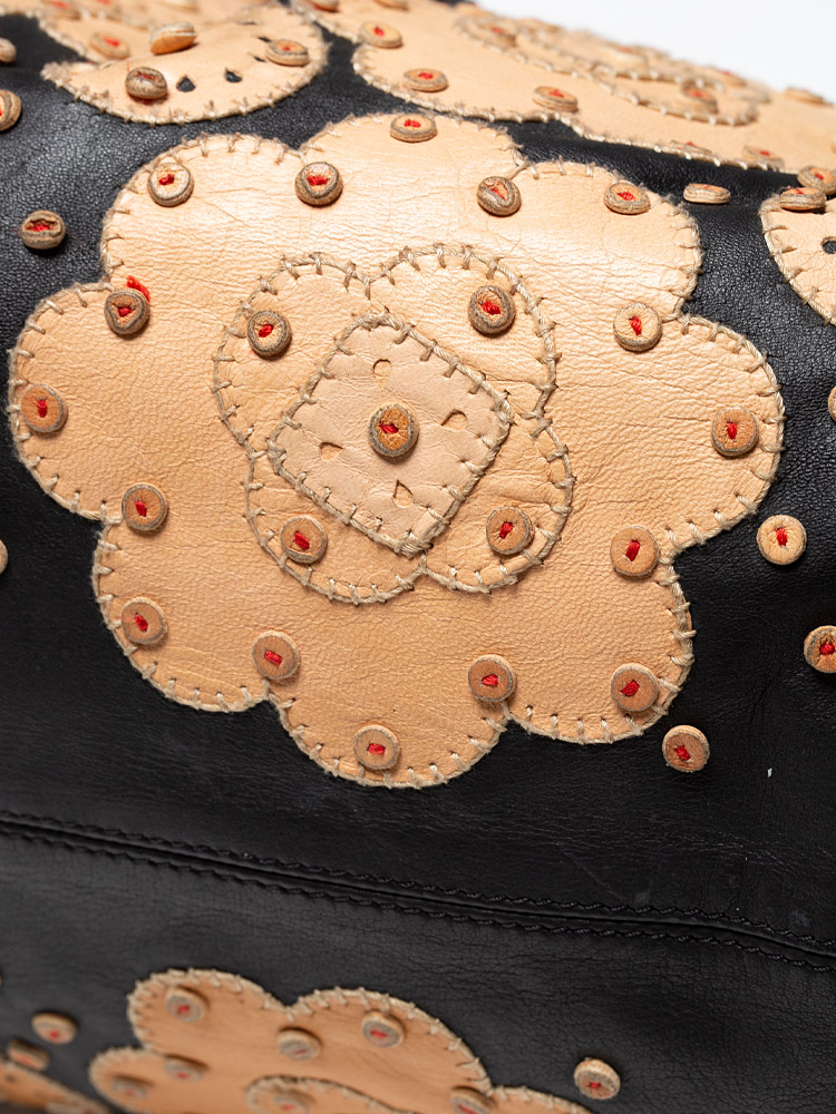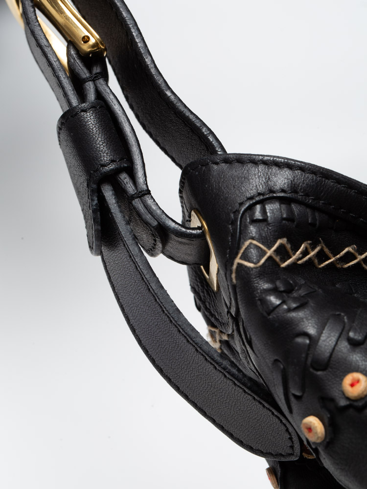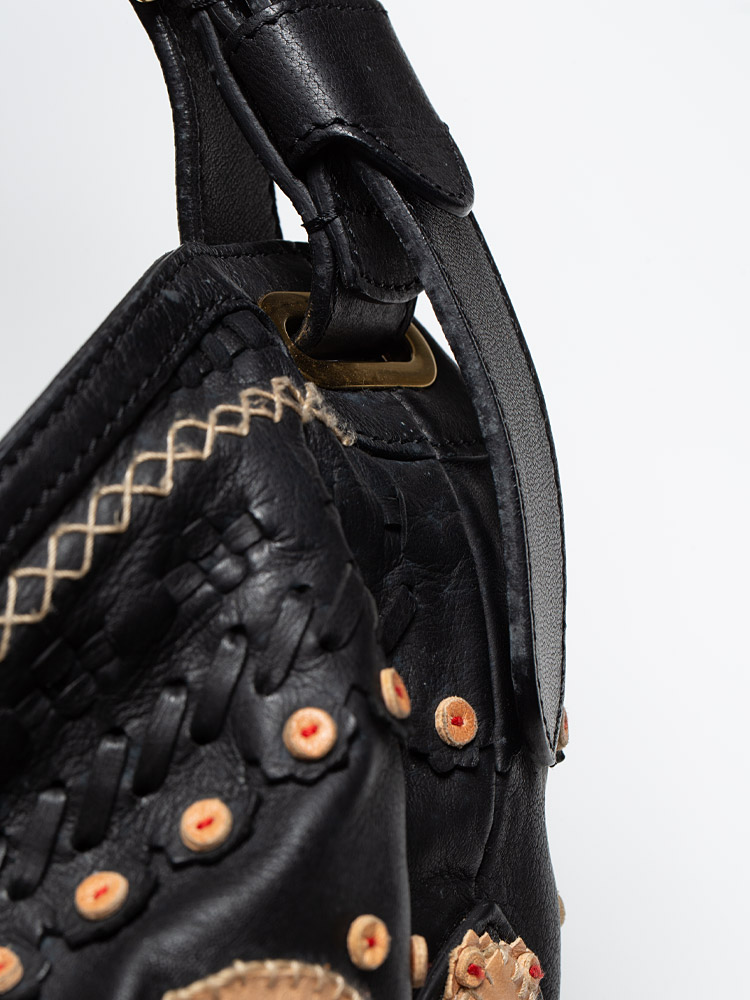 Nappa Embroidery Doctor Shoulder Bag Black