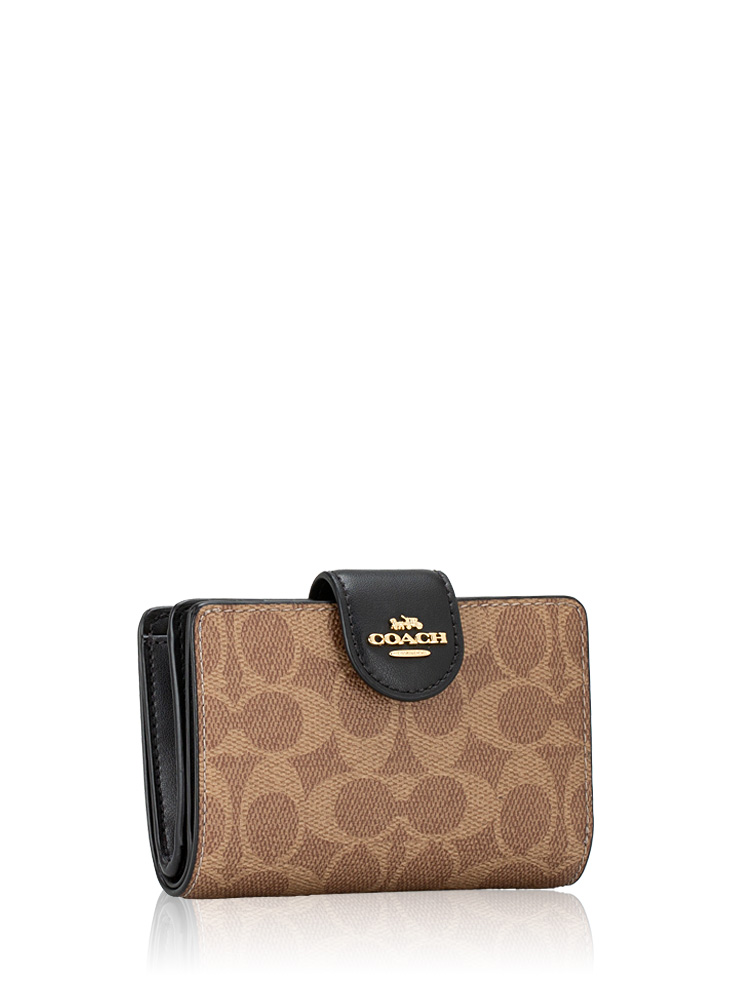 CW786 Signature Medium Corner Zip Wallet Tan Black