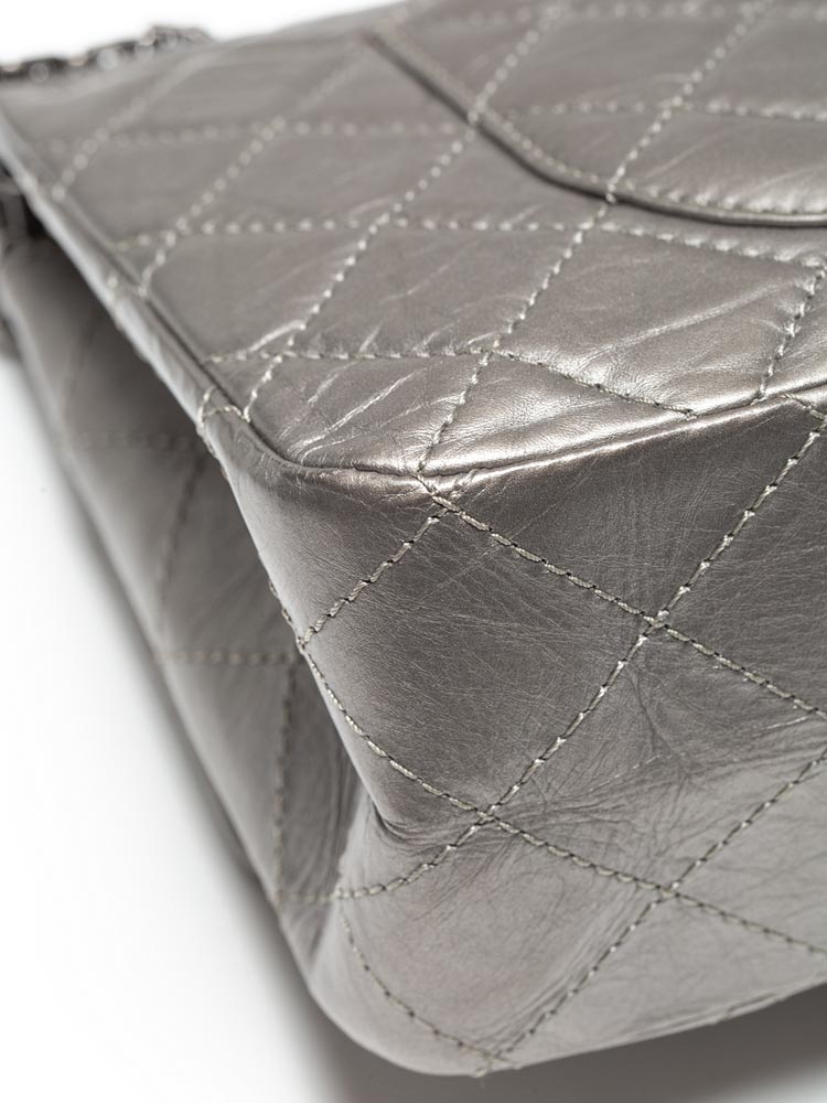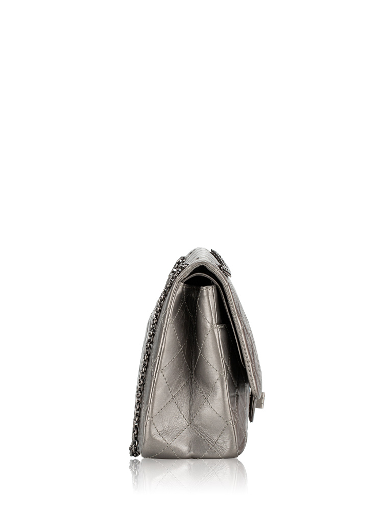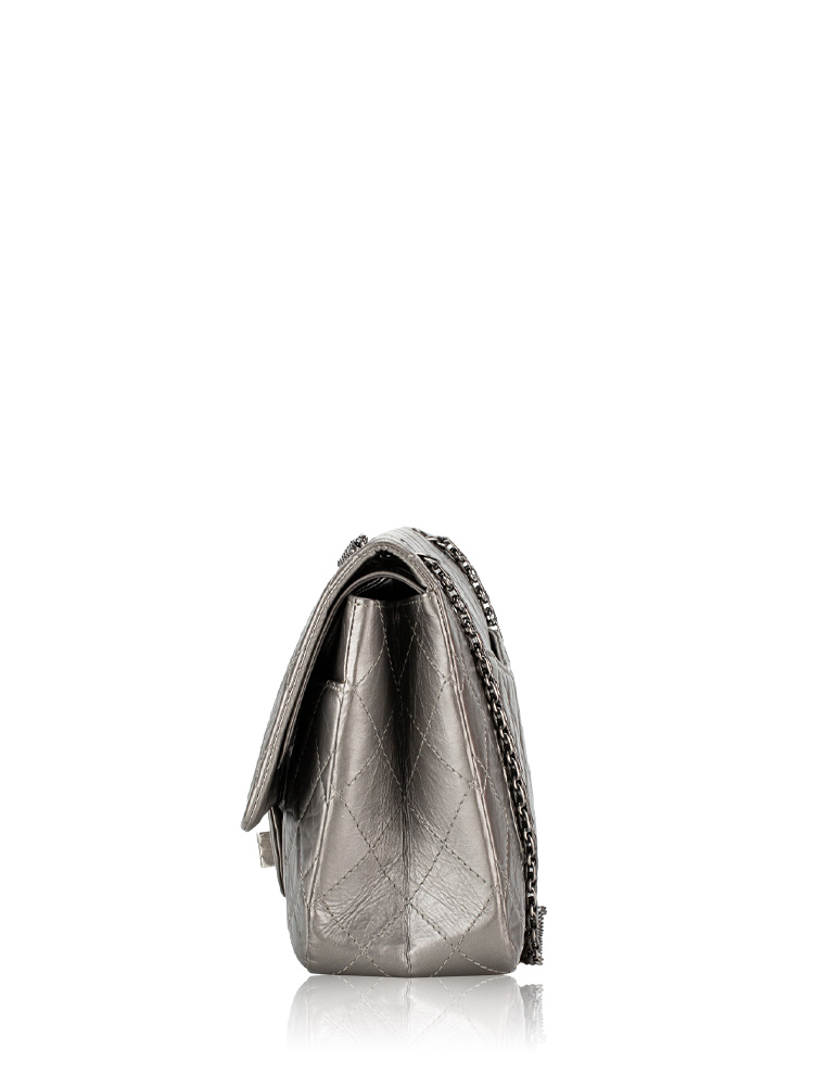 Metallic Aged Calfskin 2.55 Reissue 227 Double Flap Bag Pewter
