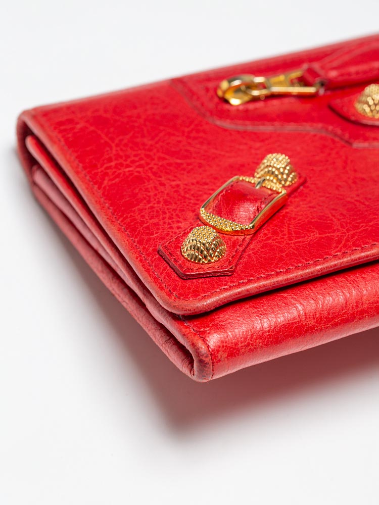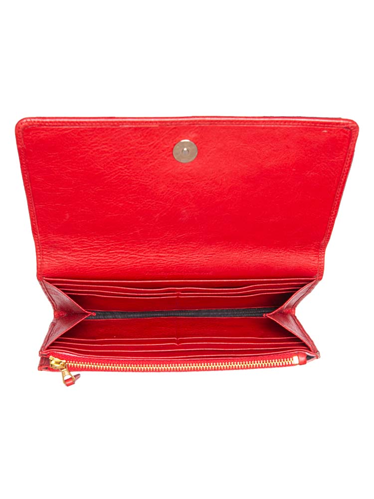 Agneau Giant 12 Rose Gold Hardware Money Wallet Rouge Coquelicot